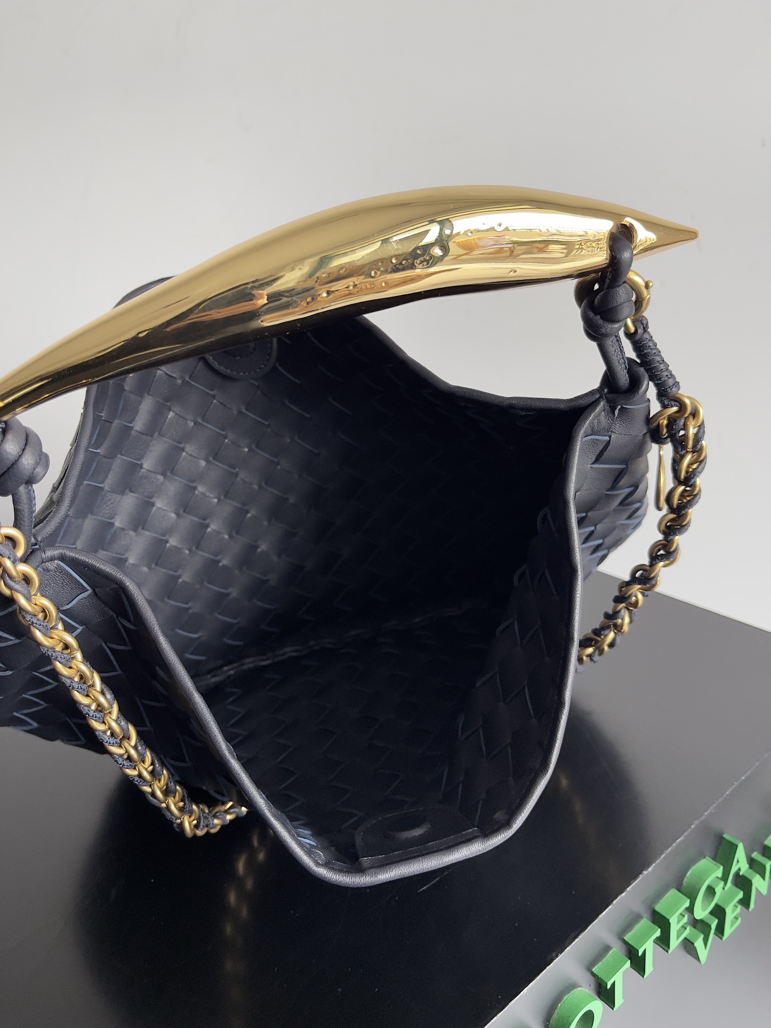 ,Size: Classic,Sculptural metallic top handle, ,4.7,Dimensions: 13,Magnetic closure,Signature intrecciato woven leather detailing.,