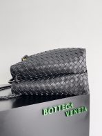 This is a replica BOTTEGA VENETA Large Andiamo in Black. This intrecciato leather top handle bag comes with sliding cross-body strap. ,Lining: Lambskin bonded Intrecciato,