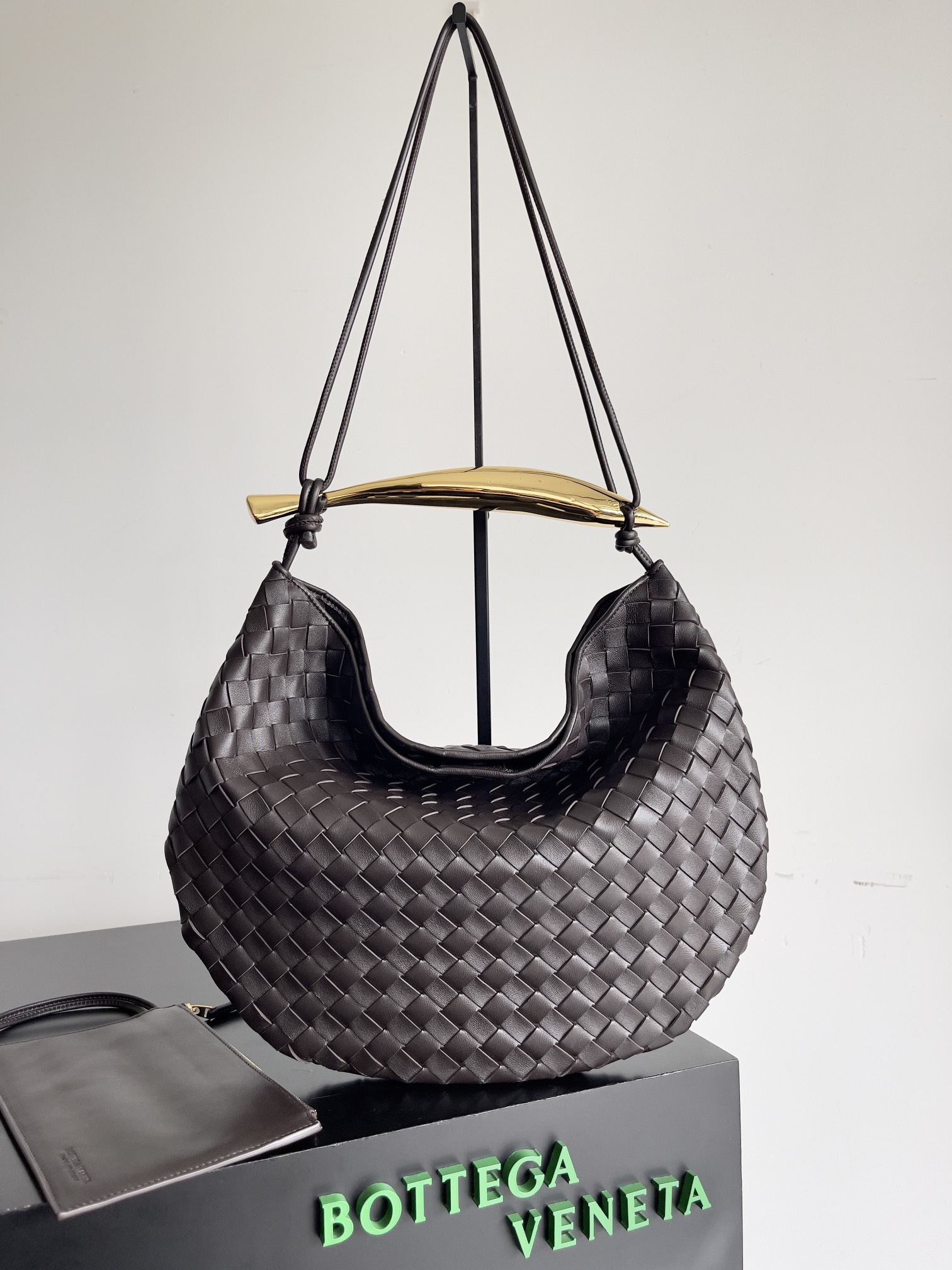 ,Size: Large,Sculptural metallic top handle, ,4.7,Dimensions: ,Magnetic closure,Signature intrecciato woven leather detailing