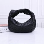 This is a replica BOTTEGA VENETA Mini Jodie in Black. This Top handle bag comes with rounded shape and signature knot in supple Intrecciato leather.,Size: Mini,Dimensions: ,Handle drop: 3.9” in,Single compartment,Zipper closure,Signature intrecciato woven leather detailing