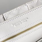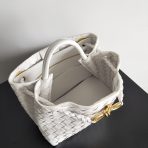 This is a replica BOTTEGA VENETA Small Andiamo in White. This intrecciato leather top handle bag comes with sliding cross-body strap. ,Lining: Lambskin bonded Intrecciato,