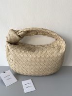 This is a replica BOTTEGA VENETA Small Jodie in Porridge. This Top handle bag comes with rounded shape and signature knot in supple Intrecciato leather.,Size: Small,Dimensions: ,Handle drop: 7.1” in,Single compartment,Zipper closure,Signature intrecciato woven leather detailing
