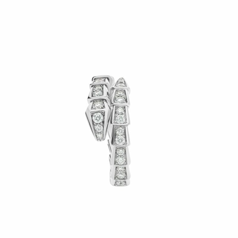 NoneWith its signature blend of pure aesthetics, enveloping shapes and charismatic flair, the Serpenti Viper 18 kt white gold ring with full pavu00efu00bf?diamonds is an essential interpretation of Bvlgariu00efu00bfu00bds icon of endless metamorphosis. Capturing the powerful and ever-evolving nature of the mythical serpent, the magnetic jewellery creation inspires us to embrace change as a source of strength and self-confidence. Easy to mix and match, the ring offers endless styling options, embodying the collectionu00efu00bfu00bds versatile spirit.