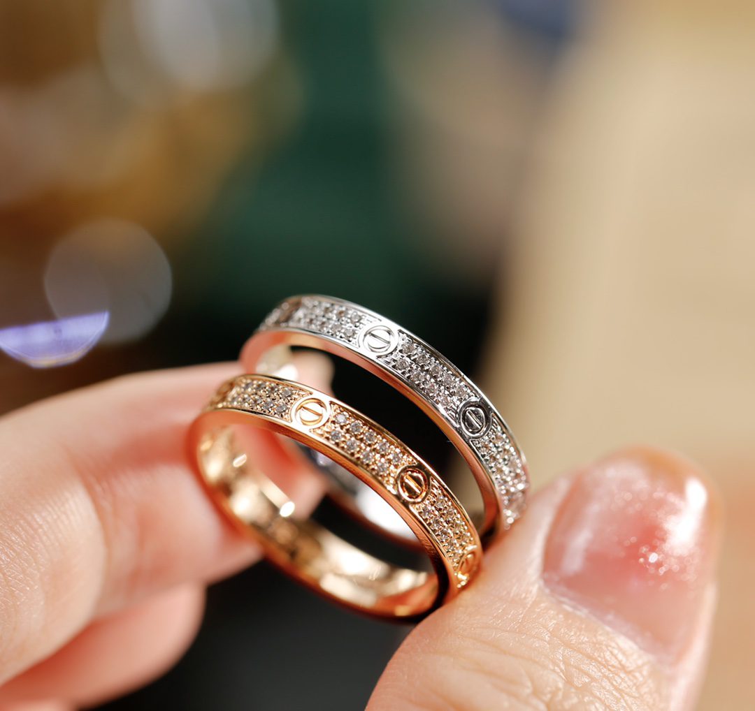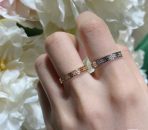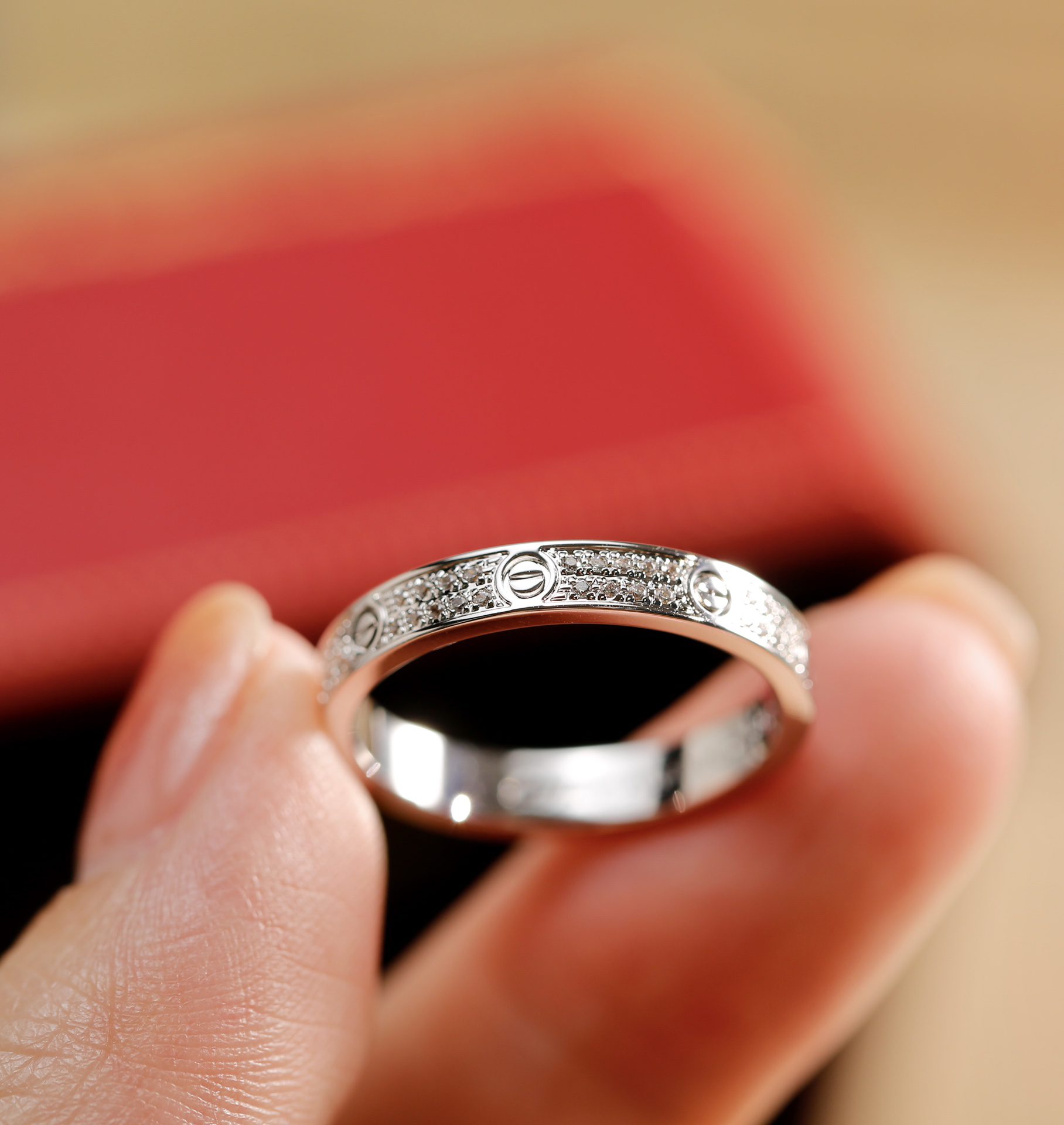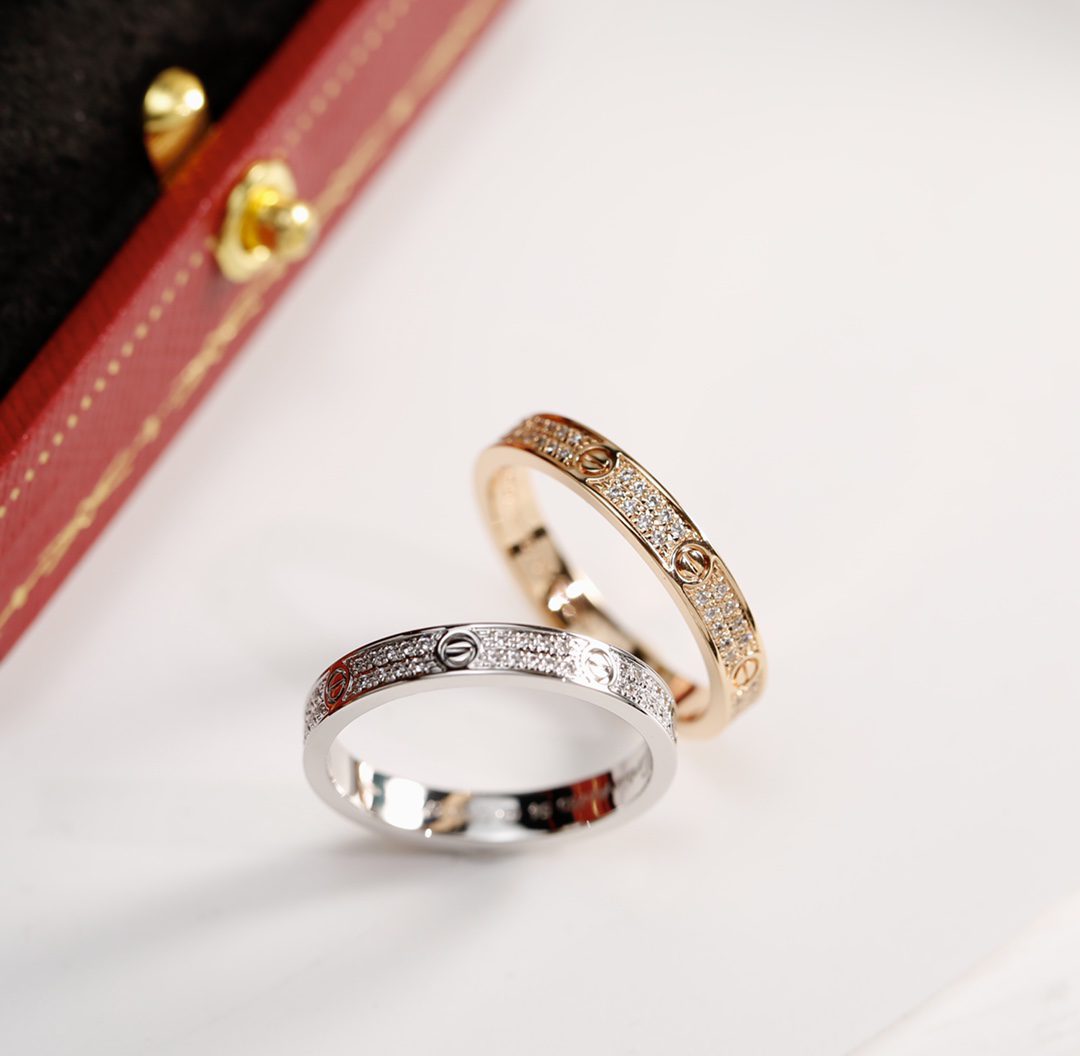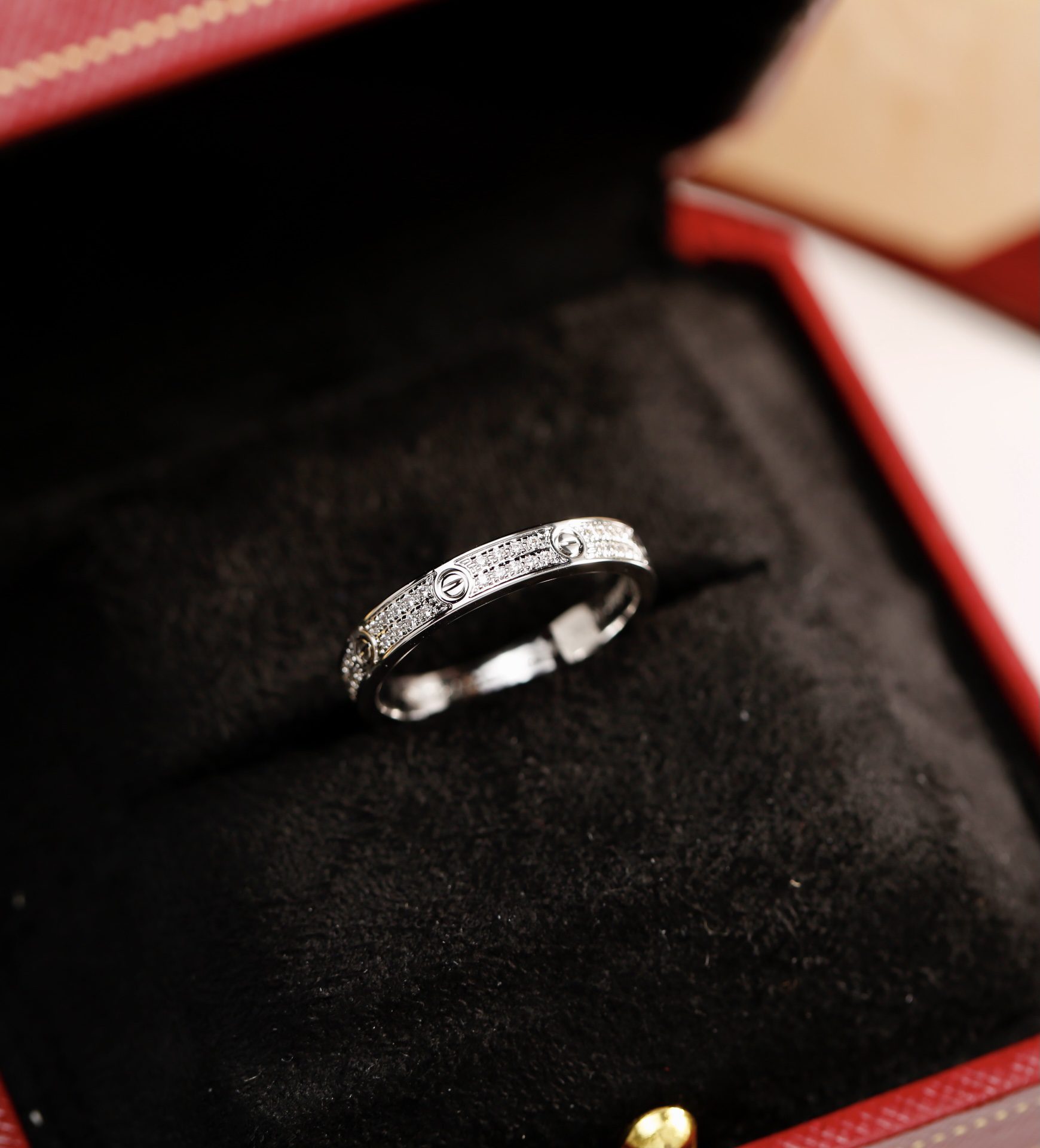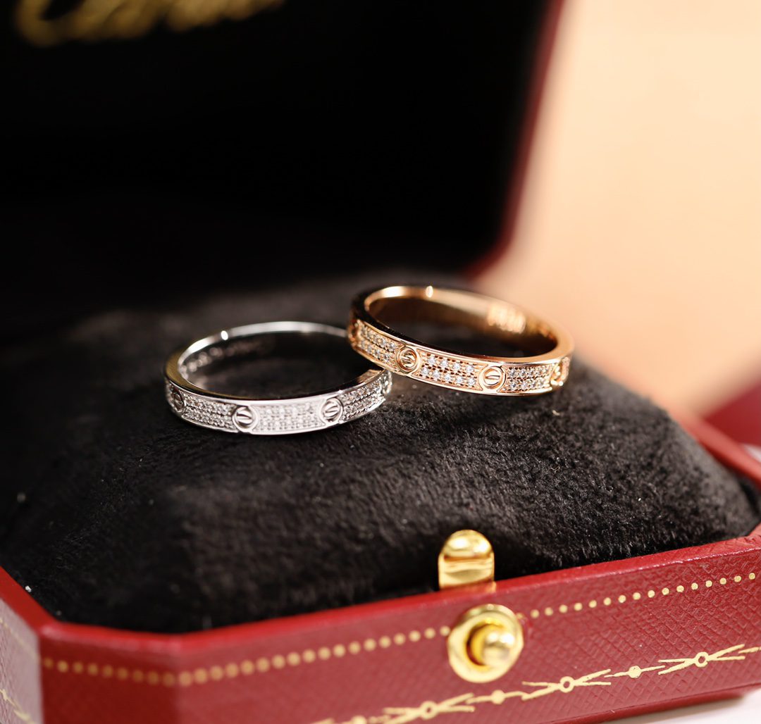 LOVE ring, mini model, rose gold 750/1000, set with 72 brilliant-cut diamonds totalling 0.19 carats. Width: 2.6 mm (for size 52).rnPlease note that the carat weight, number of stones and product dimensions will vary based on the size of the creation you order.