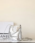 This is a replica CHANEL 22 Mini Handbag Metallic Calfskin & Silver-Tone Metal Silver. From the Cruise 2025 Collection by Virginie Viard, this mini 22 bag comes in metal silver,Size,