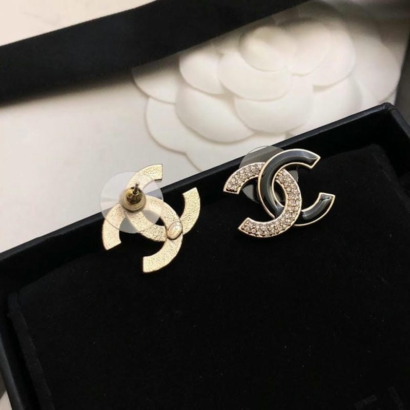 Chanel Enamel Rhinestone Double C Stud Earrings