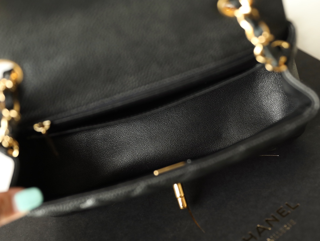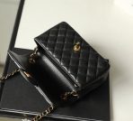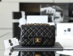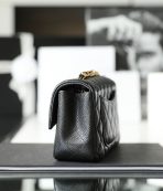This is a replica CHANEL Mini Classic 11.12 Flap Bag Lambskin & Gold-Tone Metal in Black. This mini classic flap bag comes in smooth black lambskin featuring gold-tone hardware. Open pocket on the back. Closes with classic CC-turn-lock on the front. Zipper pocket inside the flap. Outside pocket on the front under the flap. Lined in burgundy leather with two open and a lipstick pocket against the back. CC stitching on the inside flap.  Size