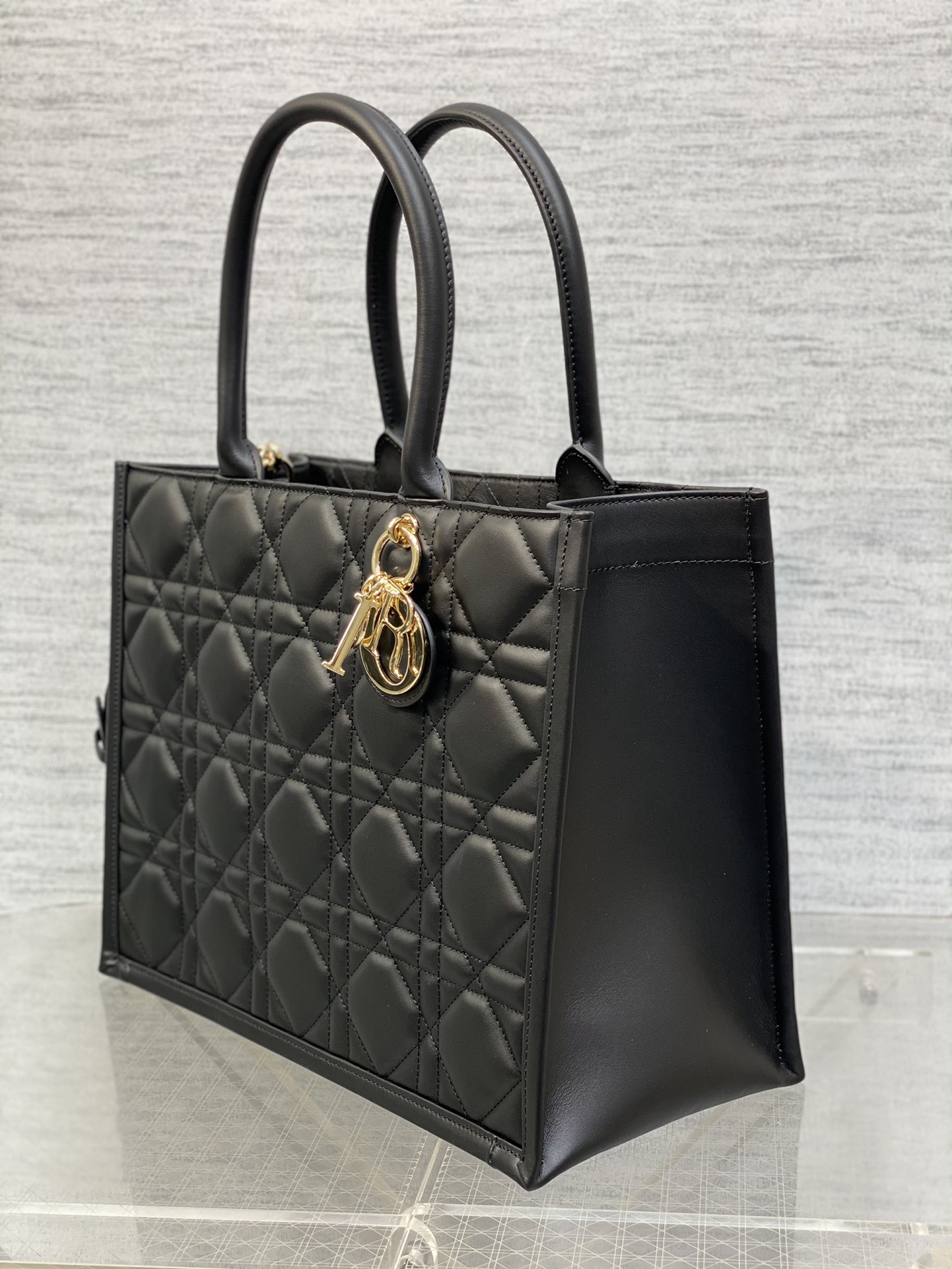 This is a replica CHRISTIAN DIOR Medium Dior Book Tote in Black Macrocannage Calfskin. Main composition of t, calfskin. ,