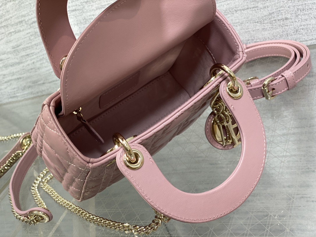 This is a replica CHRISTIAN DIOR Mini Lady Dior Bag in hydrangea pink. Main composition: lambskin. ,