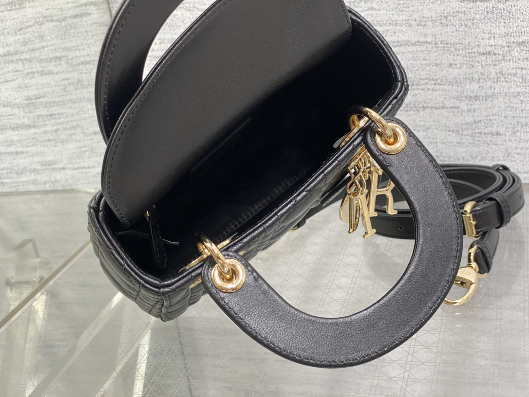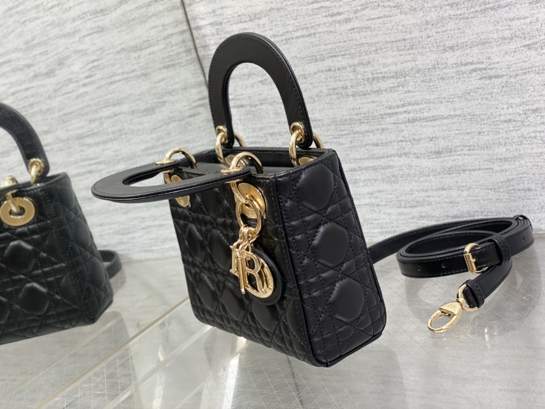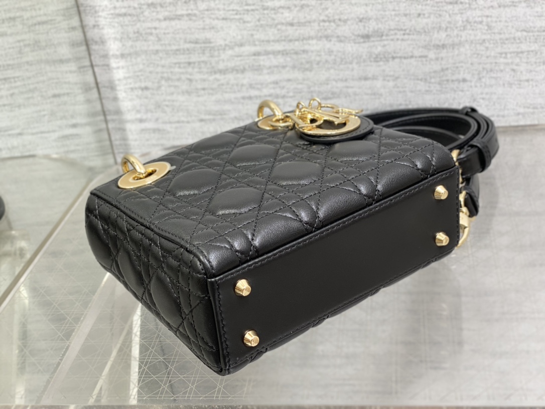 This is a replica CHRISTIAN DIOR Mini Lady Dior Bag in black. Main composition: lambskin. ,