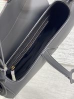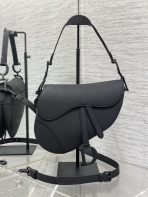 This is a replica CHRISTIAN DIOR Saddle Bag with Strap in black. This Saddle flap features a D stirrup strap and magnetic pull, as well as a tonal metal CD signature on either side of the top handle. Equipped with a thin, adjustable and removable strap, the Saddle bag may be carried by hand, worn over the shoulder or crossbody.,