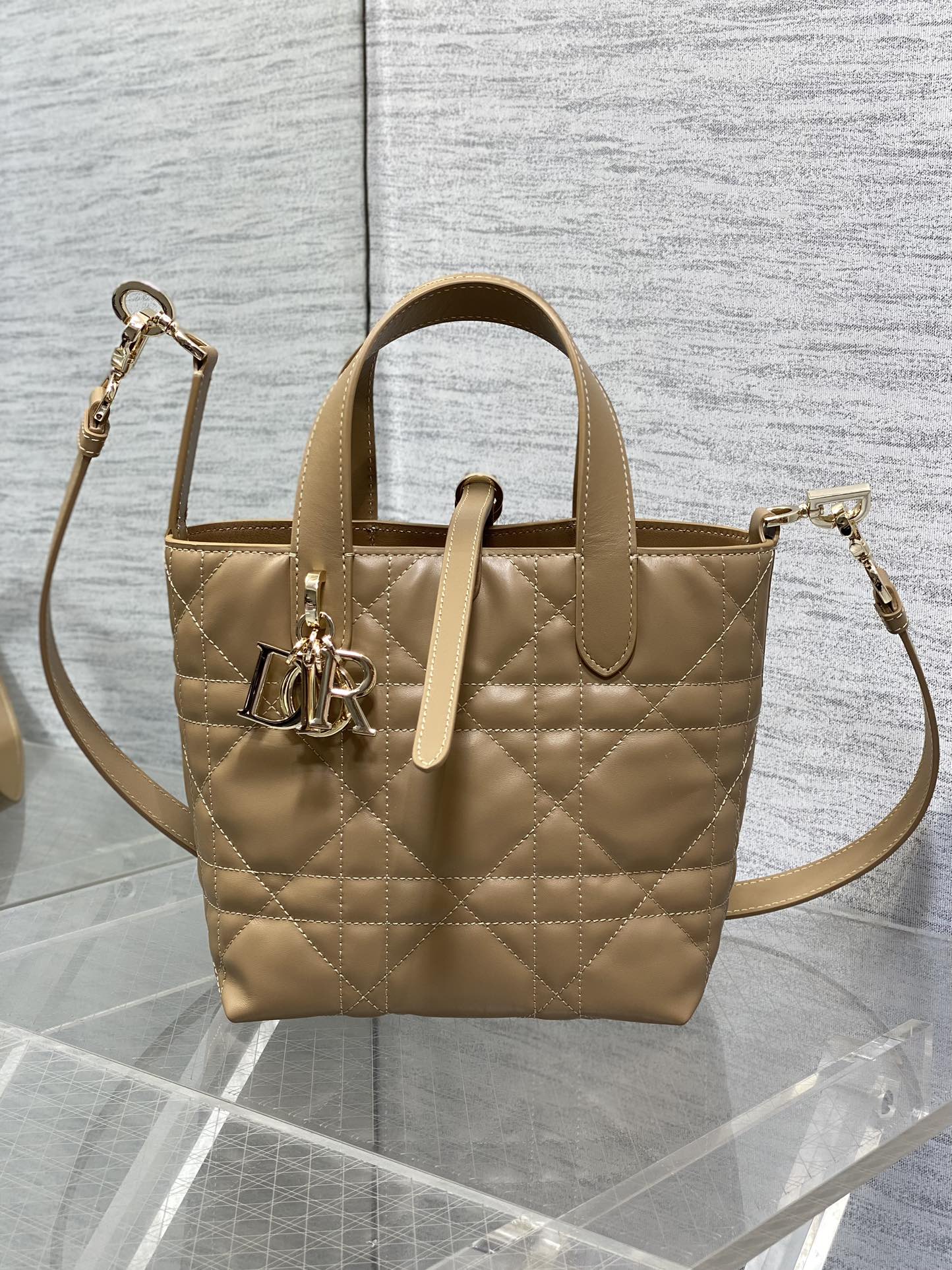 This is a replica CHRISTIAN DIOR Small Small Dior Toujours Vertical Tote Bag in medium tan. ,