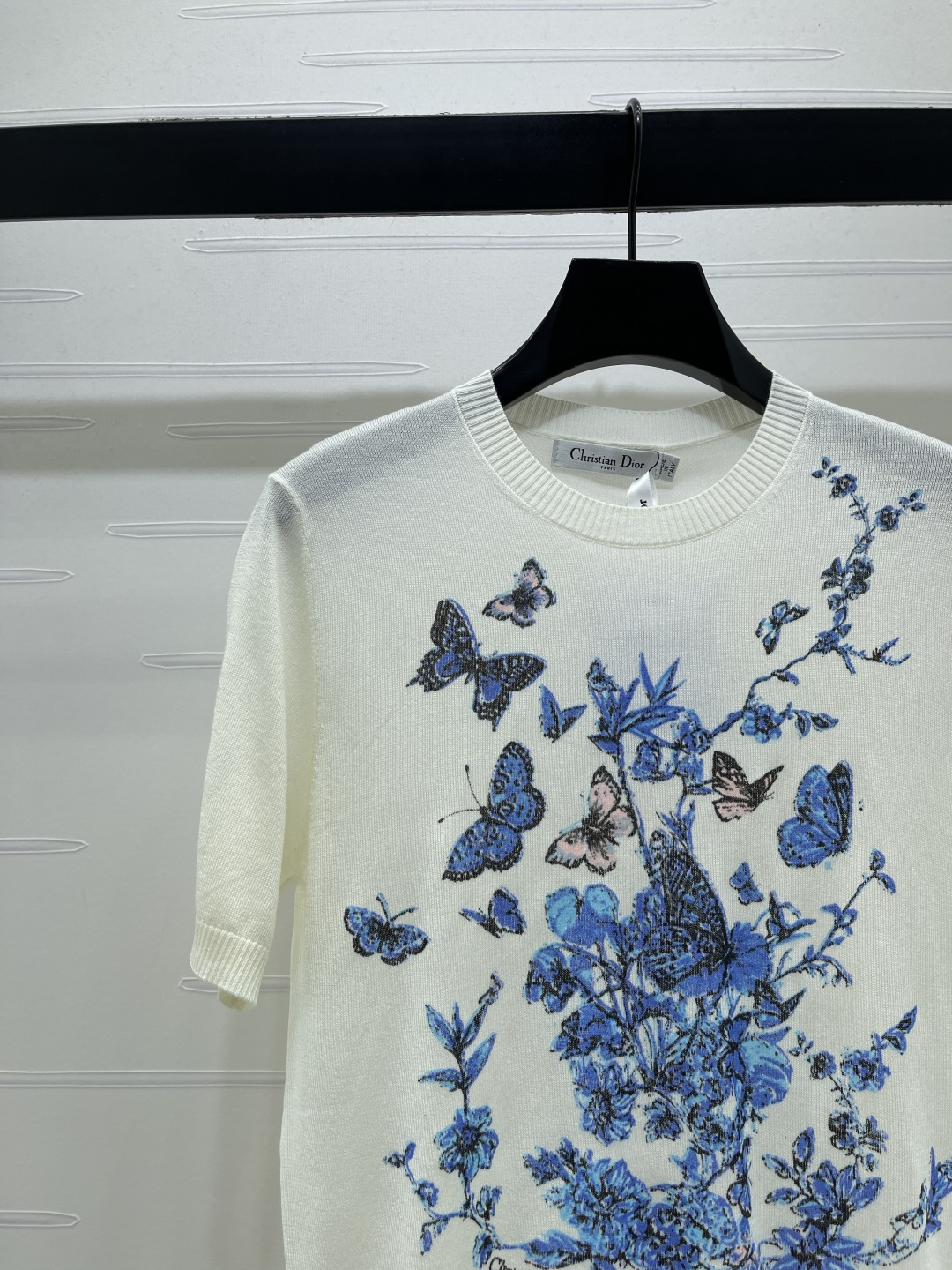 Be the first to review “Dio*r blue butterfly floral print knit short sleeve”