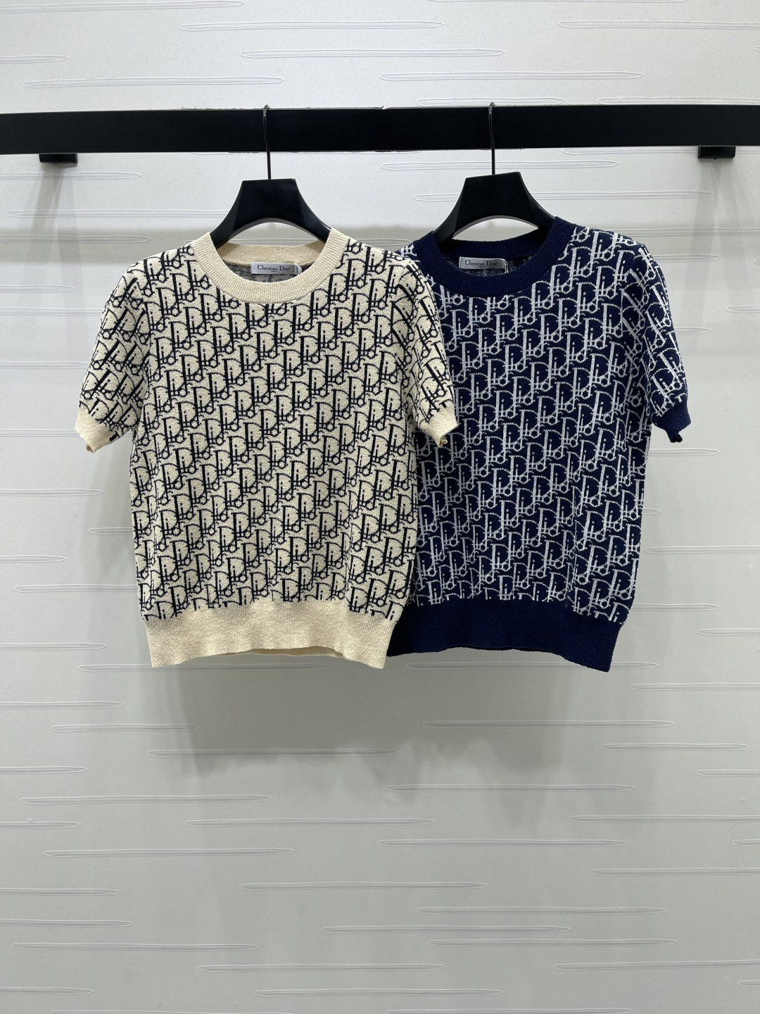 Dio*r oblique monogram jacquard short sleeve knit top cream A706B270C