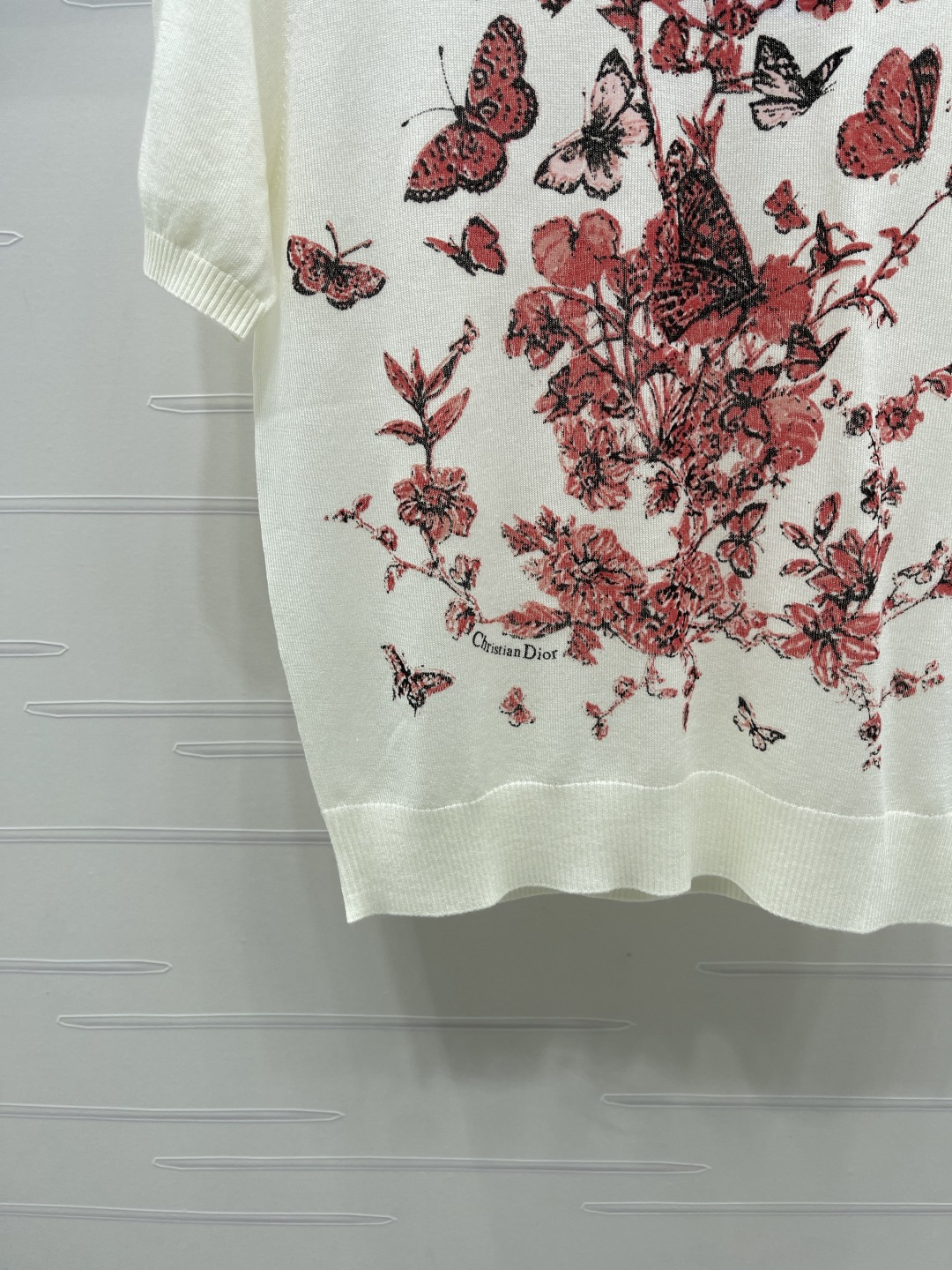 Be the first to review “Dio*r red butterfly floral print knit short sleeve”