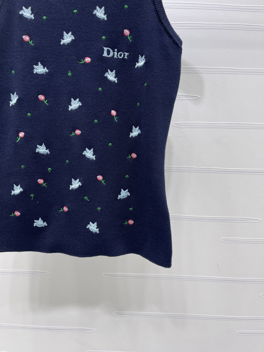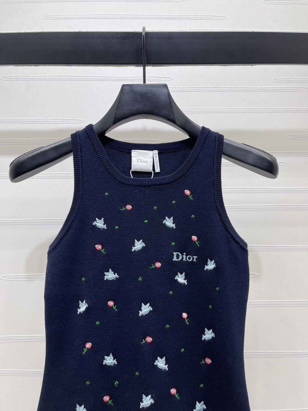 Dio*r rose and swallow embroidered ribbed tank top navy A706B280C
