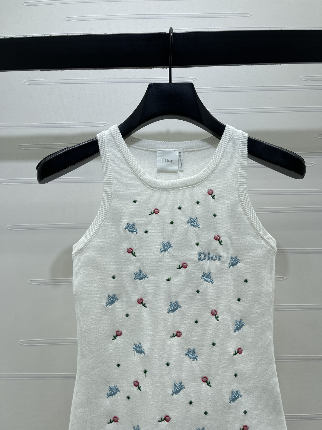 Dio*r rose and swallow embroidered ribbed tank top white A706B280C