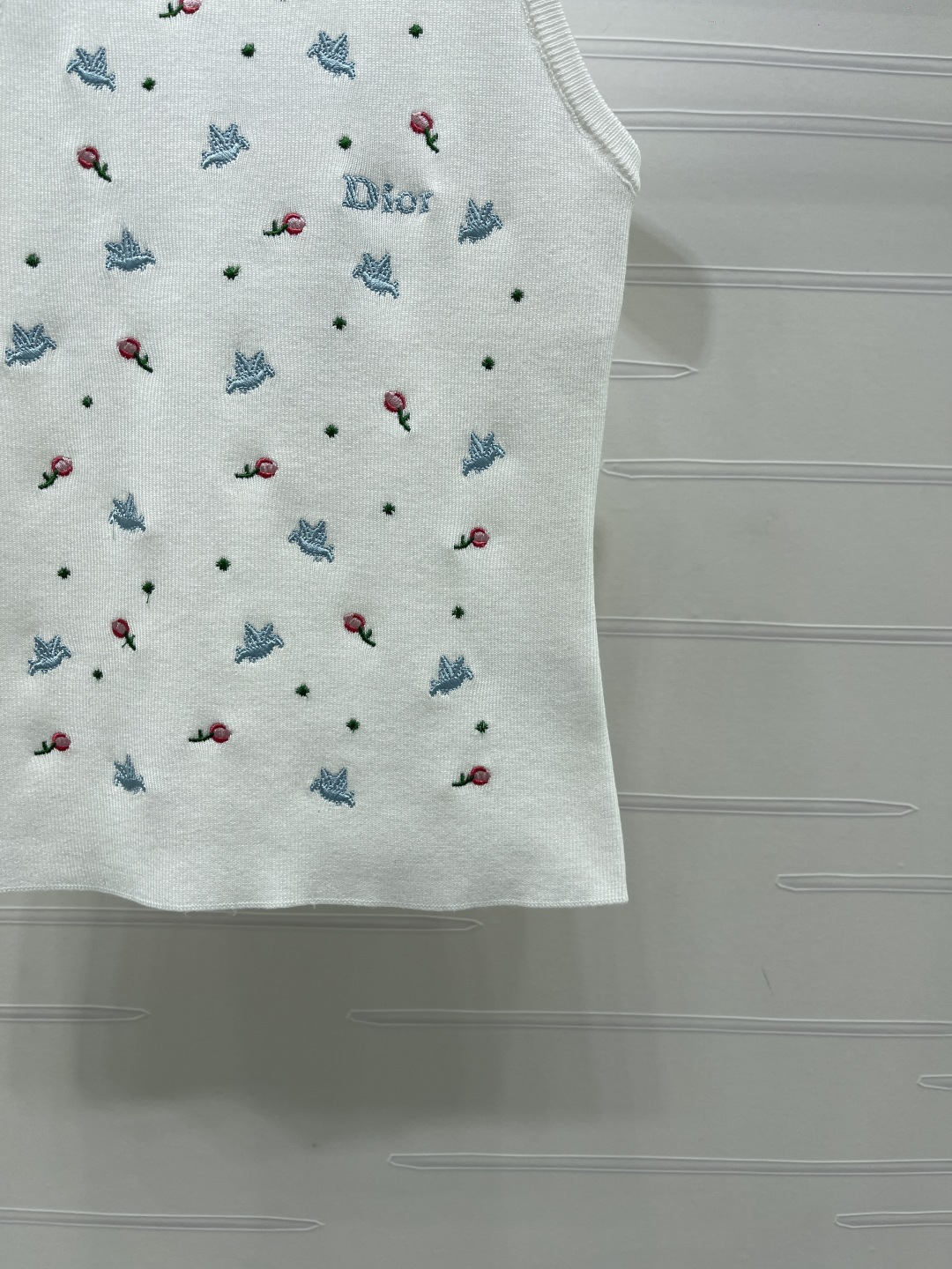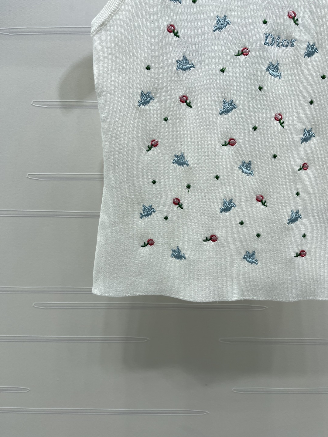 Be the first to review “Dio*r rose and swallow embroidered ribbed tank top white A706B280C”