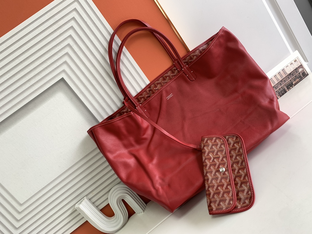This is a replica GOYARD Anjou GM Bag in red. The Anjou GM bag is a leather variant lined with goyardine that pays homage to the iconic Saint Louis bag. The ,Size ,