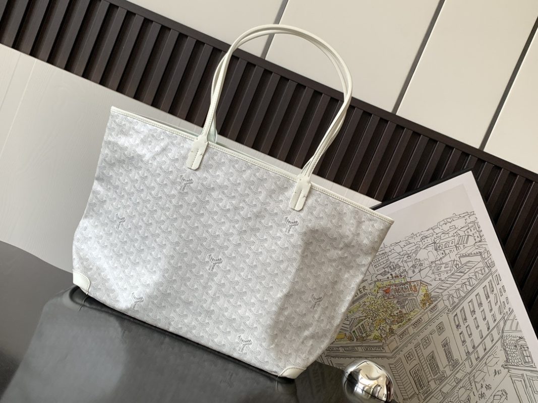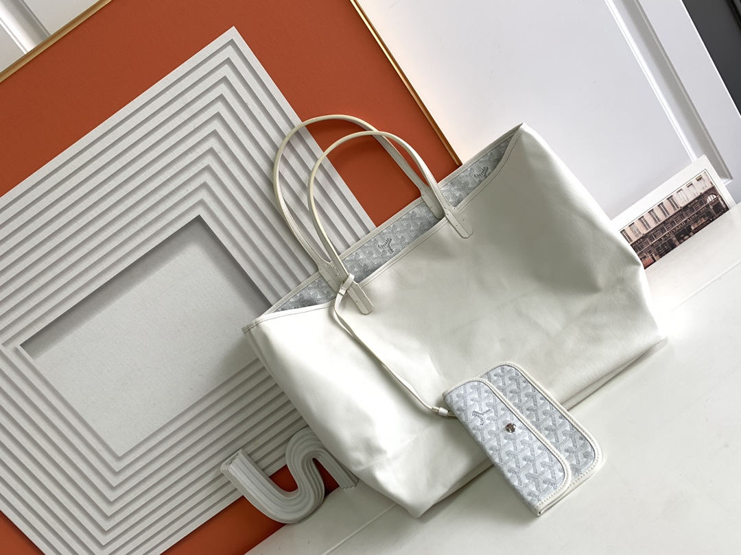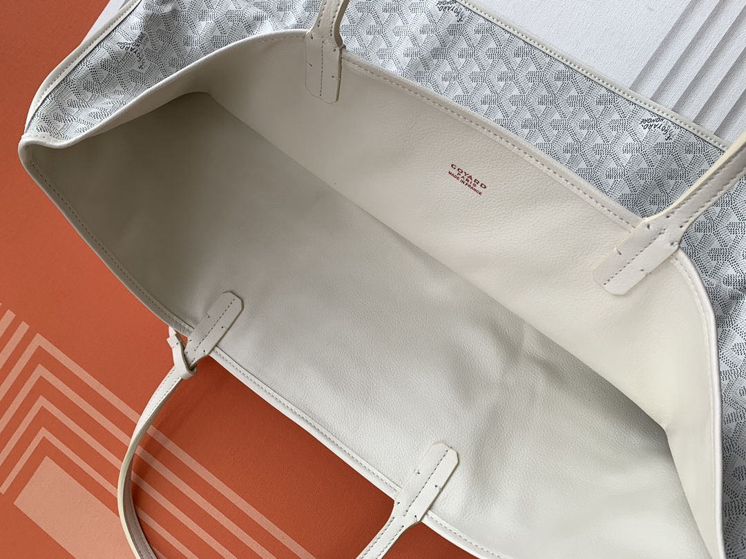 This is a replica GOYARD Anjou GM Bag in white. The Anjou GM bag is a leather variant lined with goyardine that pays homage to the iconic Saint Louis bag. The ,Size ,