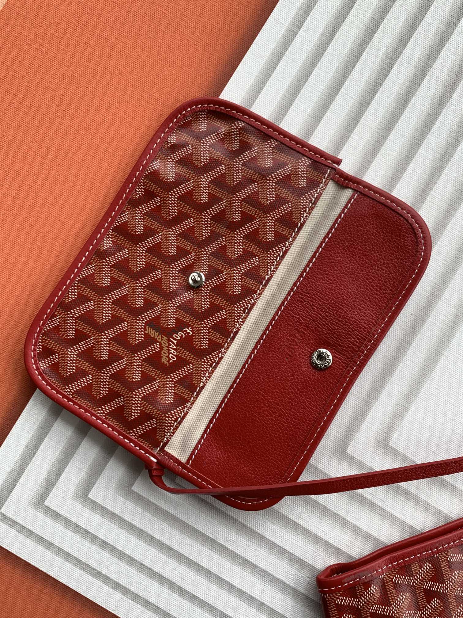 This is a replica GOYARD Anjou GM Bag in red. The Anjou GM bag is a leather variant lined with goyardine that pays homage to the iconic Saint Louis bag. The ,Size ,