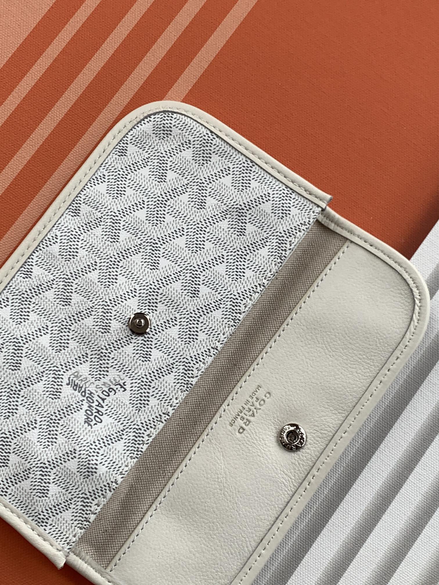 This is a replica GOYARD Anjou GM Bag in white. The Anjou GM bag is a leather variant lined with goyardine that pays homage to the iconic Saint Louis bag. The ,Size ,