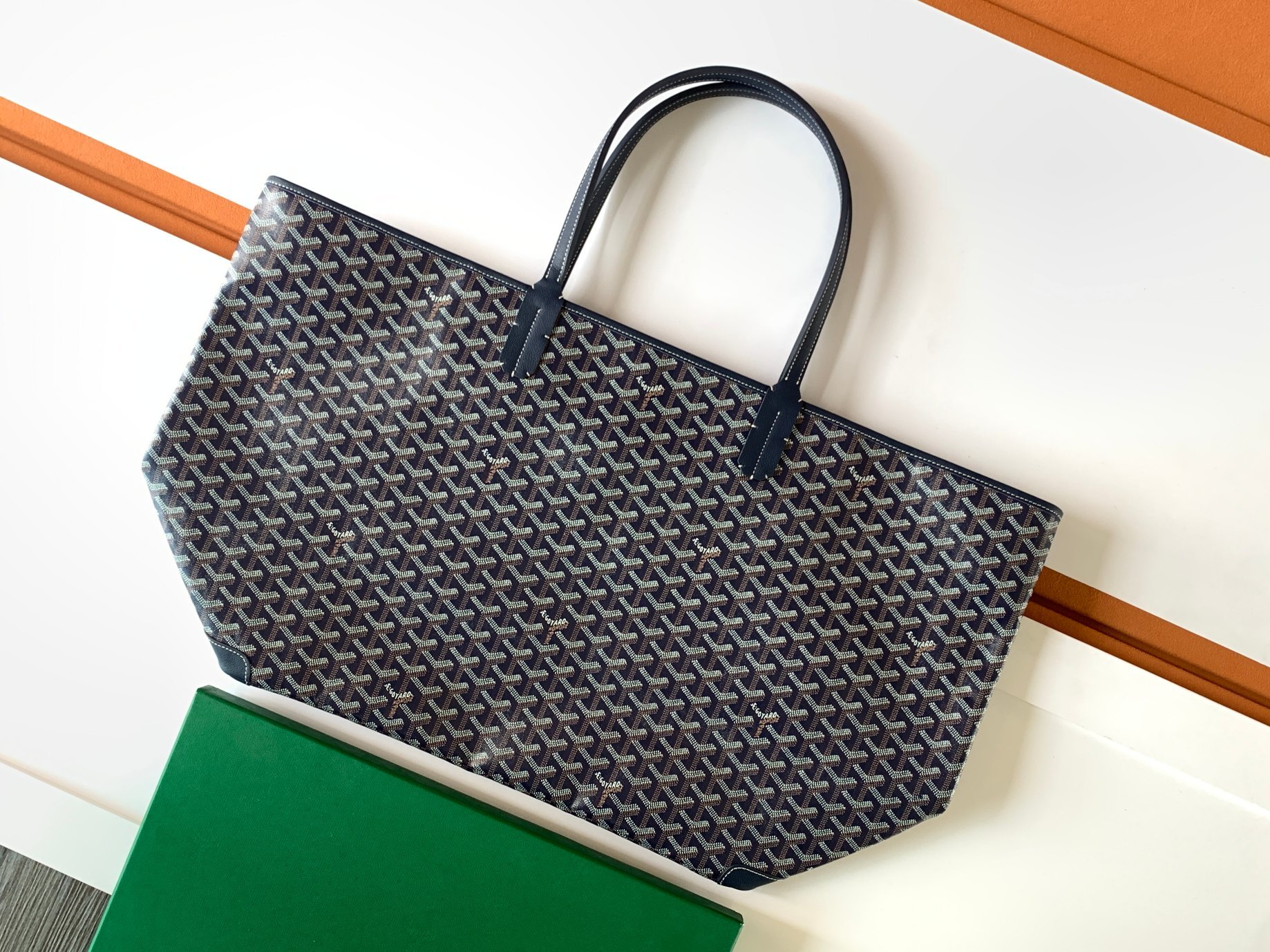 This is a replica GOYARD Artois GM Bag in navy blue. The Artois GM bag uses the aesthetic lines and codes of our Artois PM and MM bags in a travel format, ideal for a weekend or as carry-on luggage. The handles ensure comfort when worn over the shoulder. The zip closure has two lockable zips to secure the contents.,