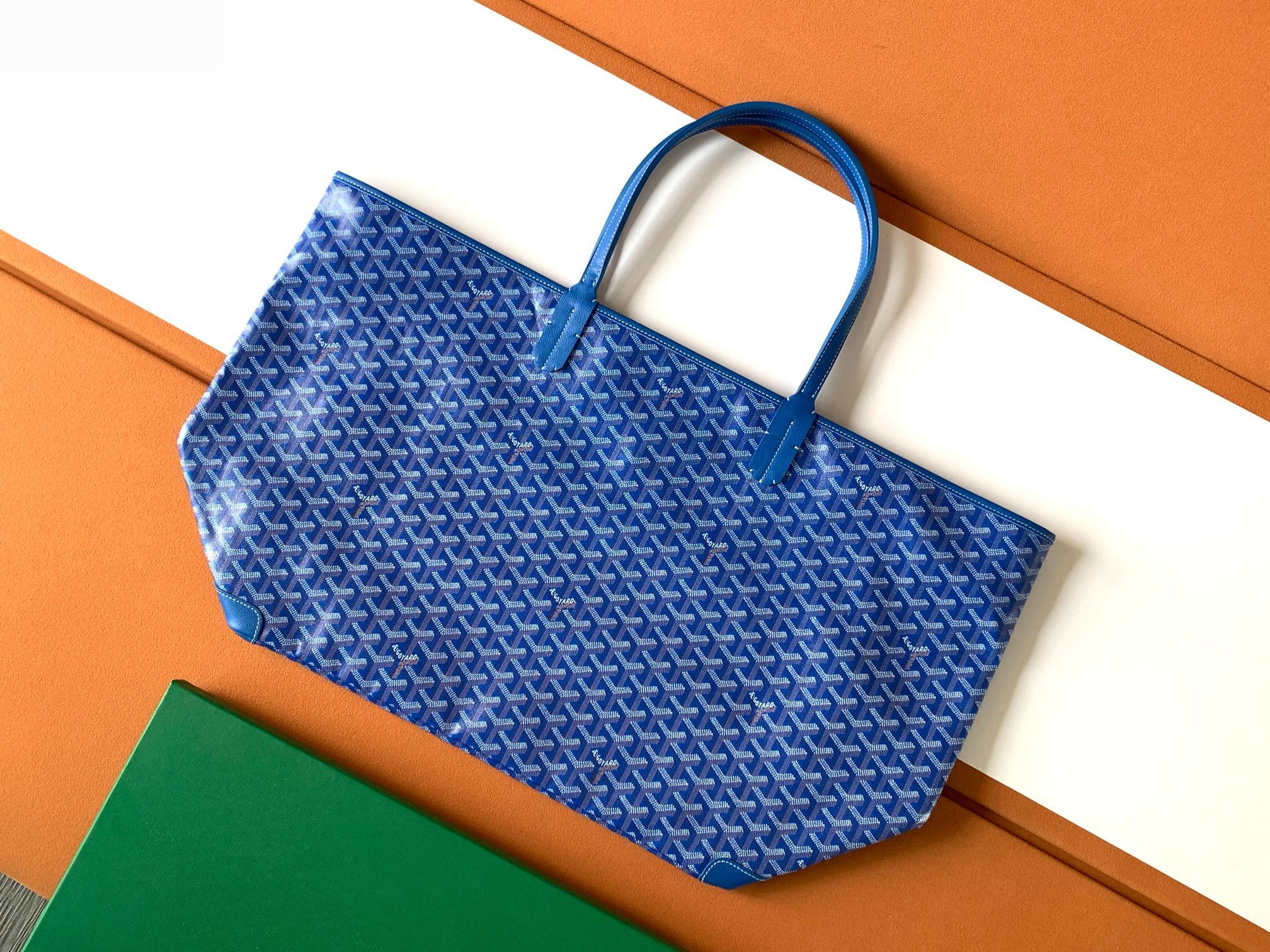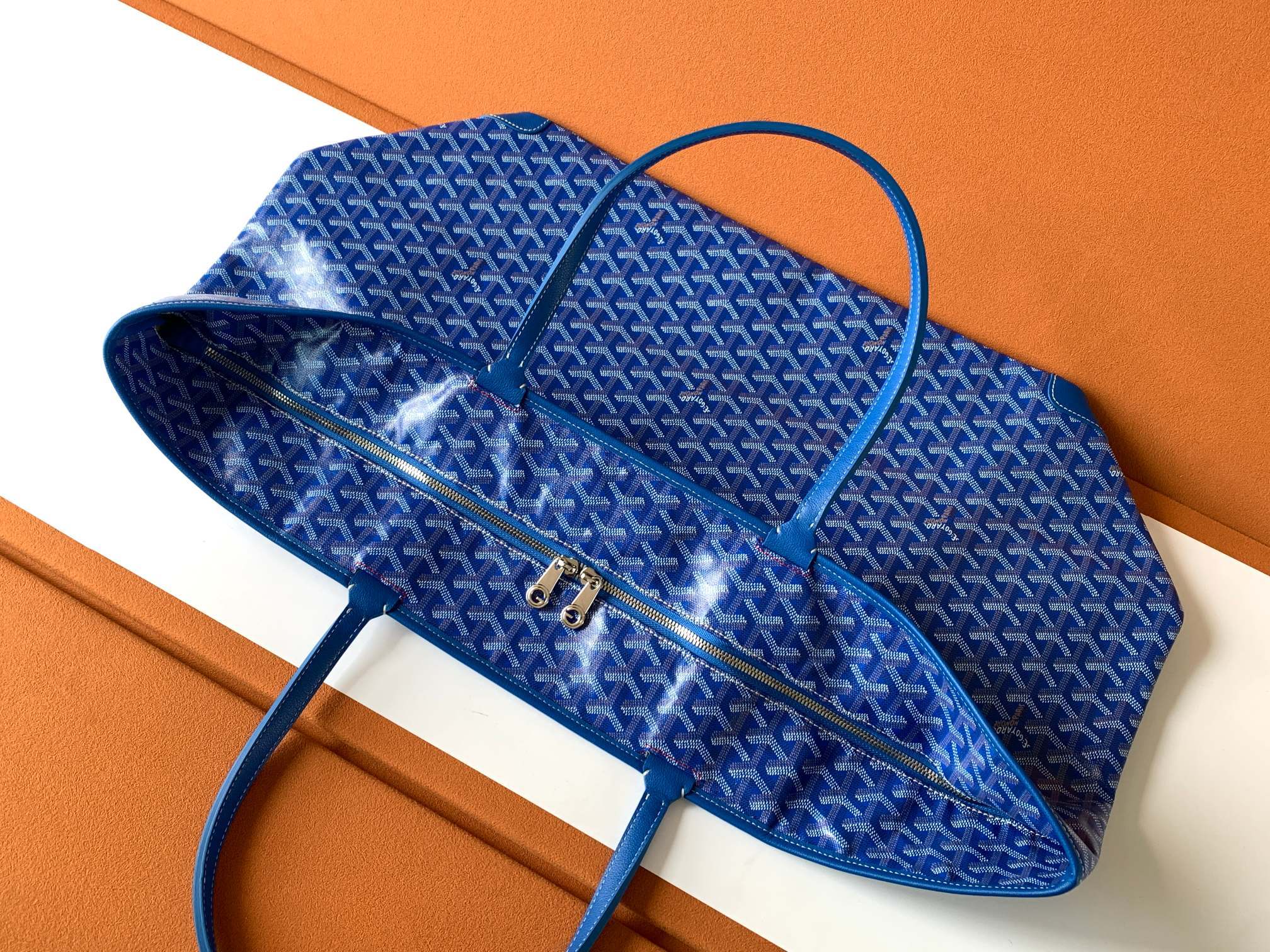 This is a replica GOYARD Artois GM Bag in sky blue. The Artois GM bag uses the aesthetic lines and codes of our Artois PM and MM bags in a travel format, ideal for a weekend or as carry-on luggage. The handles ensure comfort when worn over the shoulder. The zip closure has two lockable zips to secure the contents.,