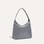 This is a replica GOYARD Bohème Hobo Bag in black. The Bohème Hobo bag epitomizes lightness, flexibility, and safety thanks to its zip closure. It is very comfortable as a shoulder bag thanks to its wide handle. It also features the emblematic removable pouch that closes with a snap fastener.,