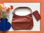 This is a replica GOYARD Bohème Hobo Bag in red. The Bohème Hobo bag epitomizes lightness, flexibility, and safety thanks to its zip closure. It is very comfortable as a shoulder bag thanks to its wide handle. It also features the emblematic removable pouch that closes with a snap fastener.,