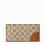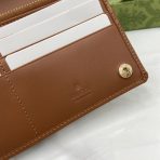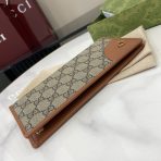 ,Beige and brown new GG Monogram coated fabric,Brown leather trim,Web taffeta lining,Embossed Gucci,Additional D-ring for detachable items,Inside: 1 zip pocket, card slots with flat pocket underneath,Snap button closure,Closed: 7.5″W x 3.7″H x 1.2″D ; Open: 7.5″W x 8″H x 0.4″D,,Weight: 0.19lbs approximately