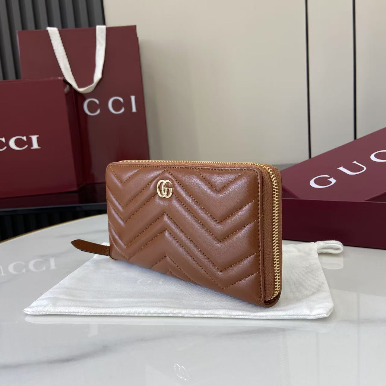 This is a replica GUCCI GG Marmont zip around wallet 837758. ,