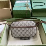 This is a replica GUCCI Horsebit 1955 Mini Shoulder Bag in beige and ebony leather. Cotton linen lining. ,Size: Mini,