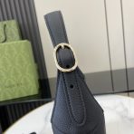 This is a replica GUCCI Jackie 1961 Small Shoulder Bag in Black leather. Crafted from fine leather which highlights its craftsmanship, it comes in crescent shape, and sleek silhouette. Light gold-toned hardware, leather trim, and an additional strap featuring the green and red Web.,Size,