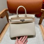 This is a replica ###Hermès Birkin 25 Craie Togo Palladium Hardware. ###