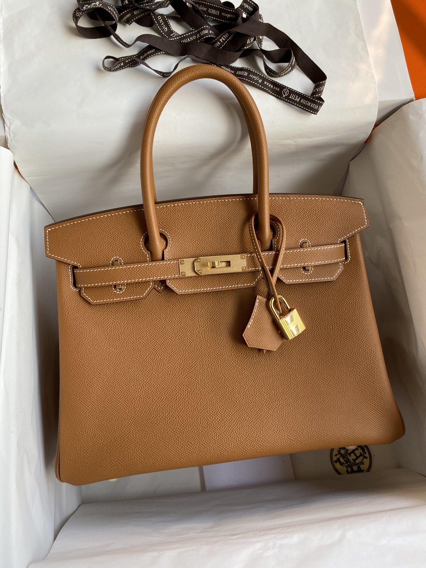 This is a replica ###Hermès Birkin 30 Gold Epsom Palladium Hardware. ###