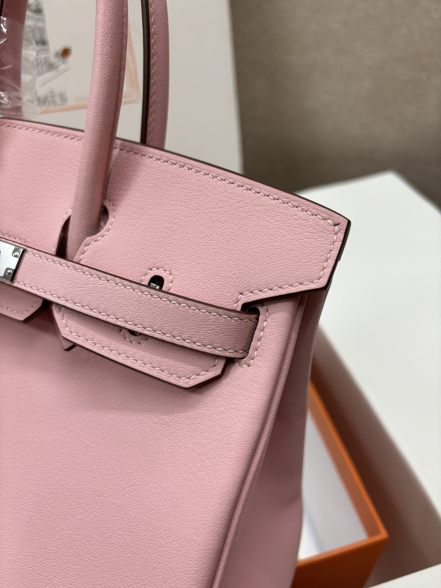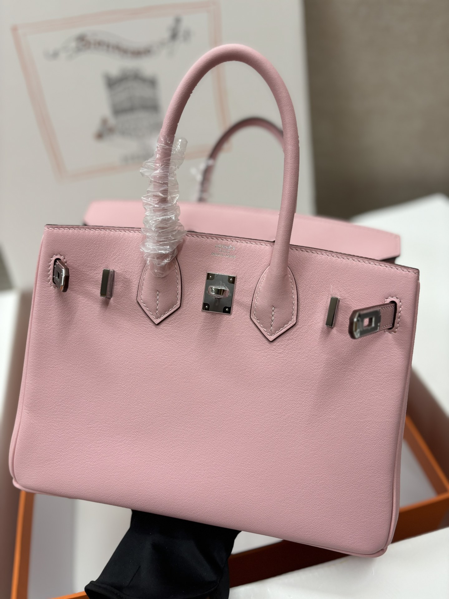 This is a replica ###Hermès Birkin 30 Rose Sakura Swift Palladium Hardware. ###