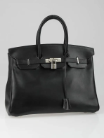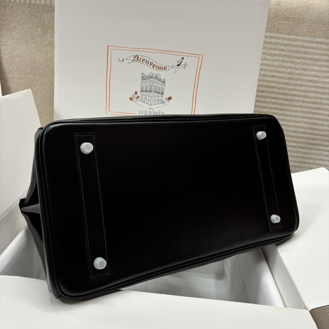 This is a replica Hermès Birkin 35 Black Box Palladium Hardware###. ###