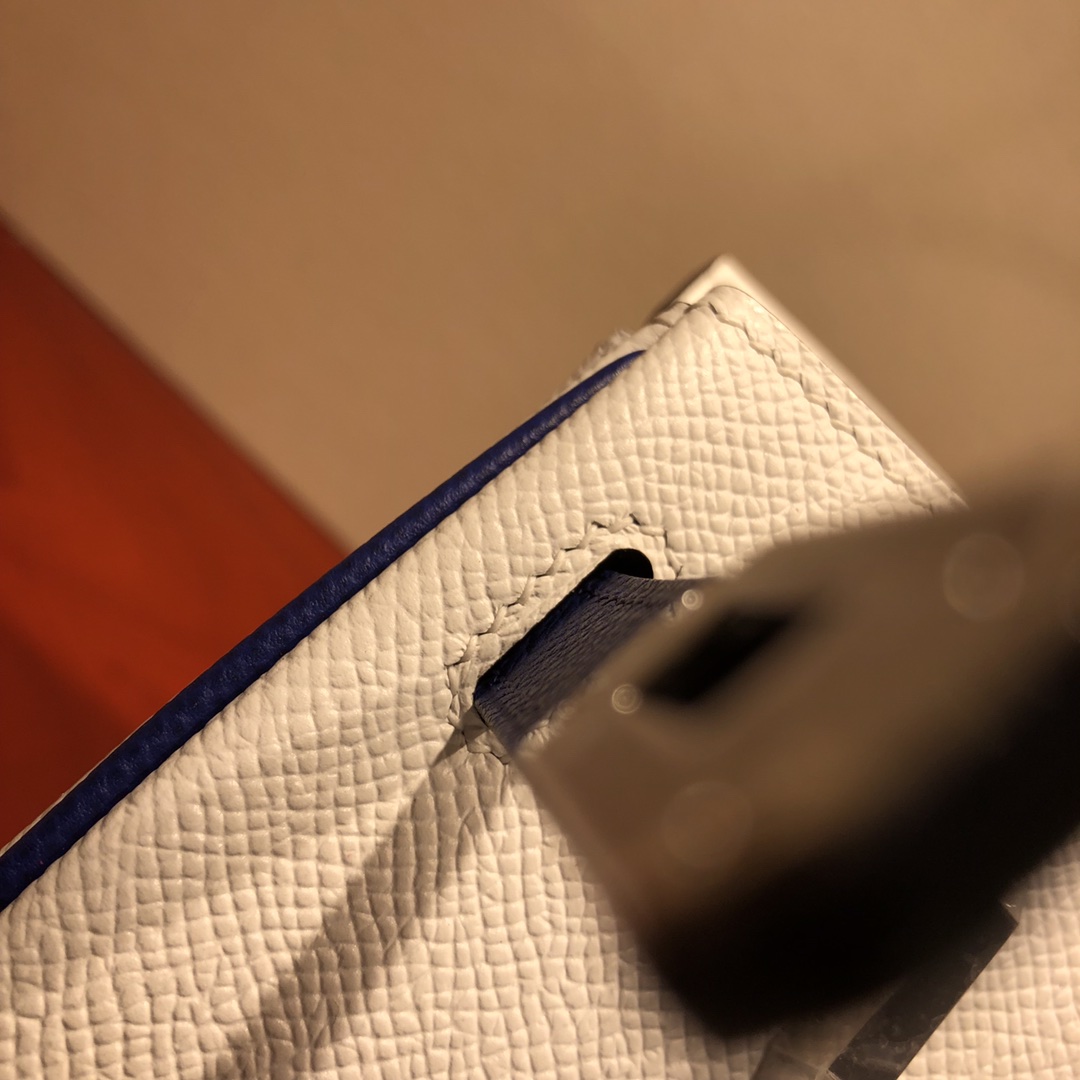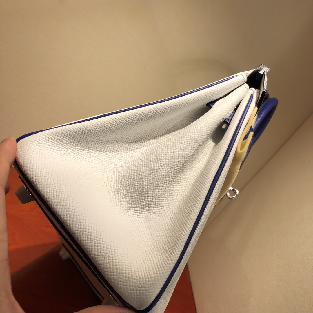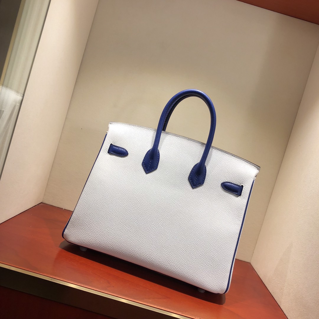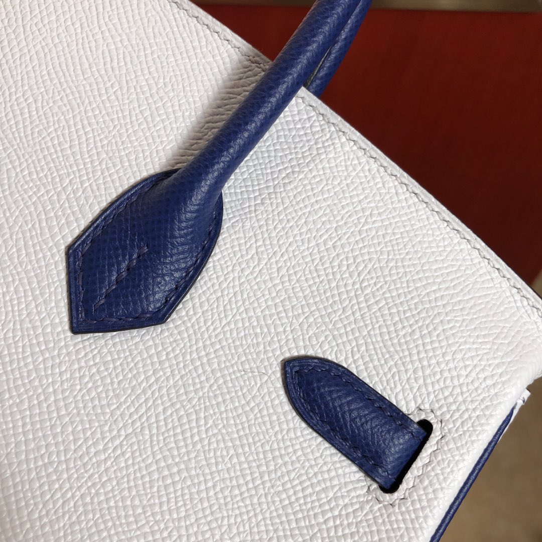 This is a replica ###Hermès Birkin 35 Blanc and Blue Htdra Epsom Leather and Gold Hardware. ###