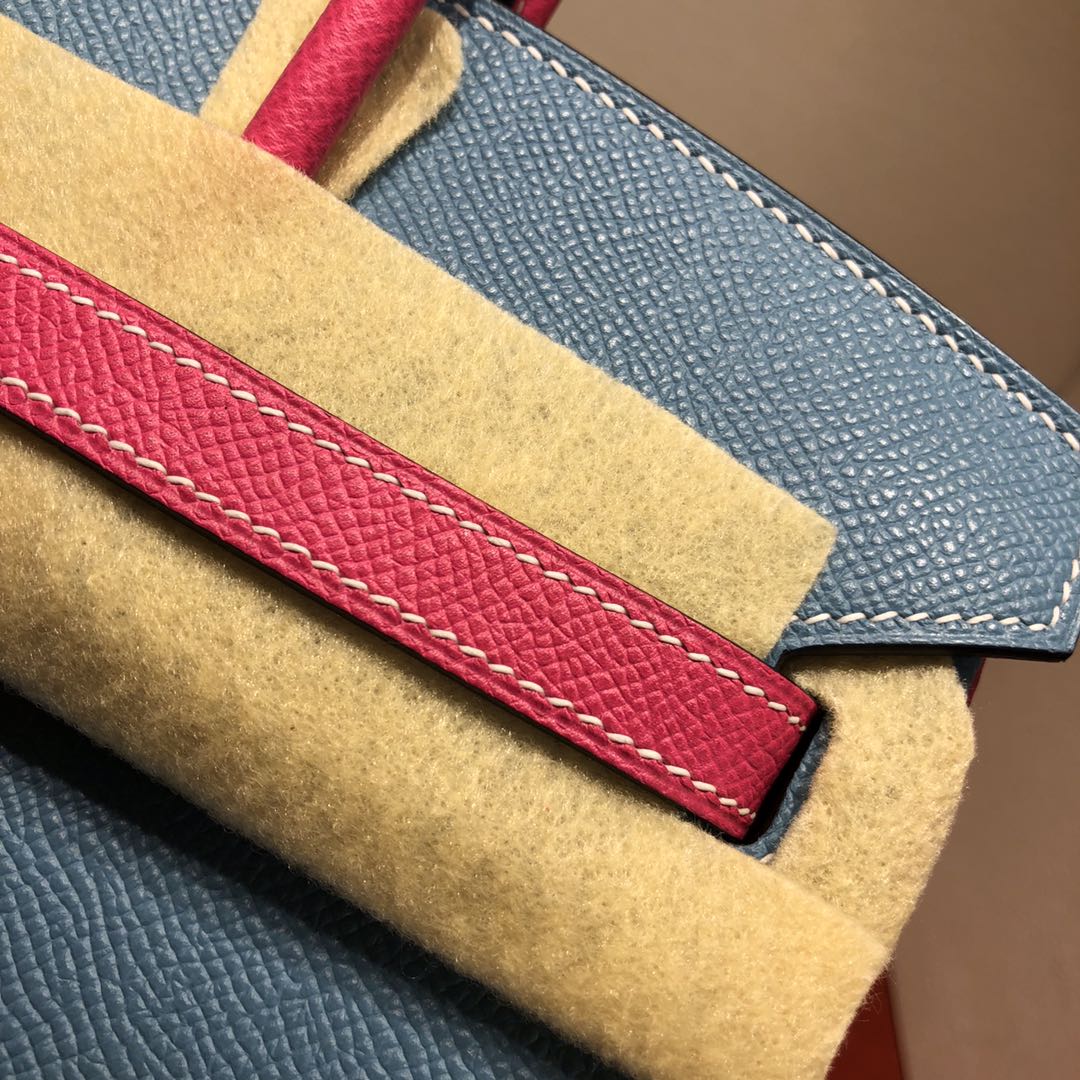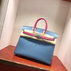 This is a replica ###Hermès Birkin 35 Blue Jean and Rose Tyrien Epsom Leather and Palladium Hardware. ###