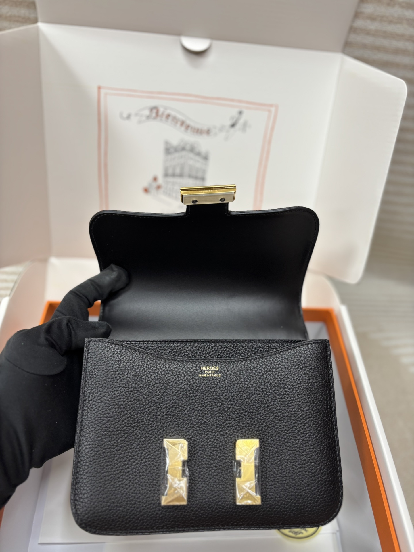 This is a replica ###Hermès Constance 18 Black Togo Gold Hardware. ###