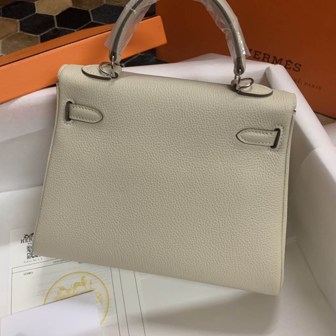 Hermès Kelly Retourne 25 Craie Togo Palladium Hardware