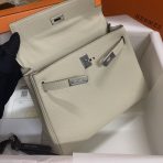 This is a replica ###Hermès Kelly Retourne 25 Craie Togo Palladium Hardware. ###