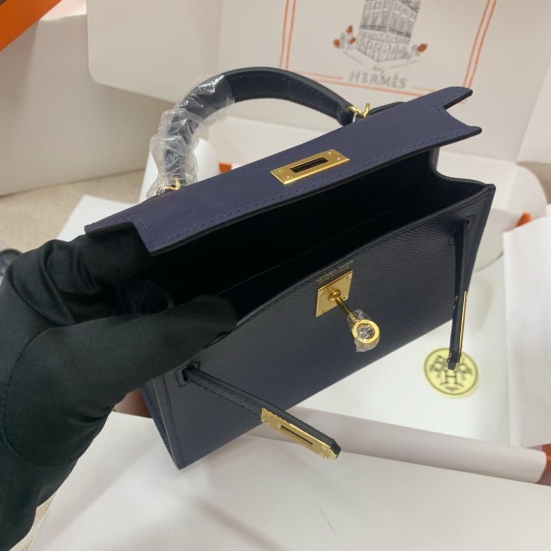 This is a replica ###Hermès Kelly Sellier 20 Bleu Saphir Epsom Leather Gold Hardware. ###