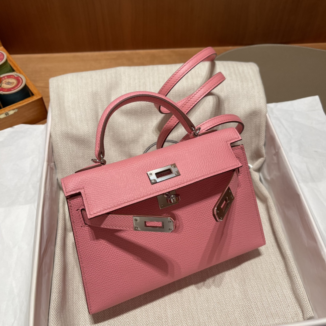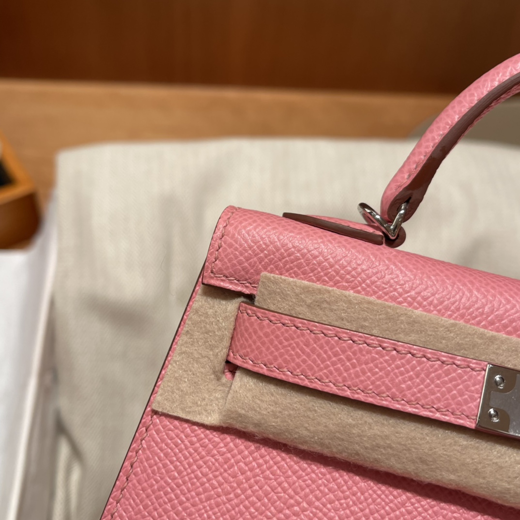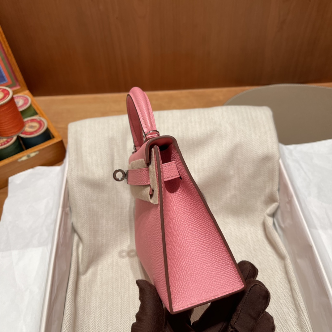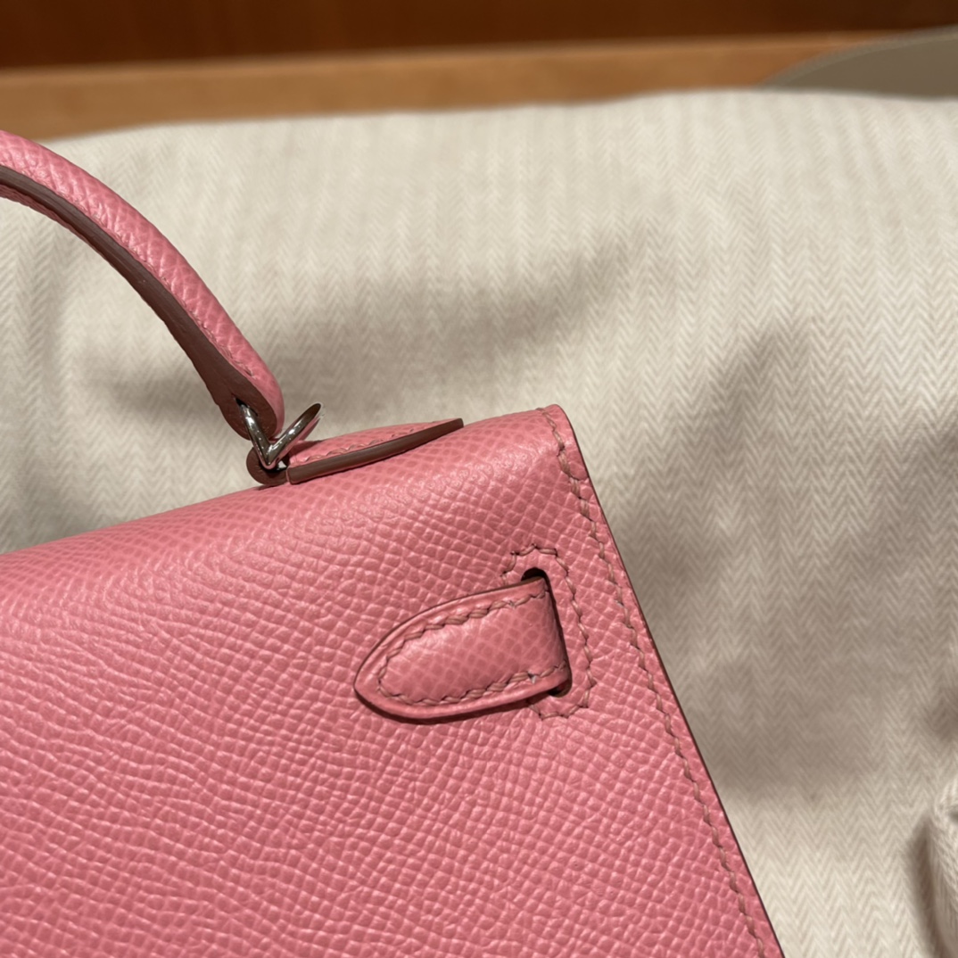 This is a replica ###Hermès Kelly Sellier 20 Rose Confetti Epsom Leather Palladium Hardware. ###