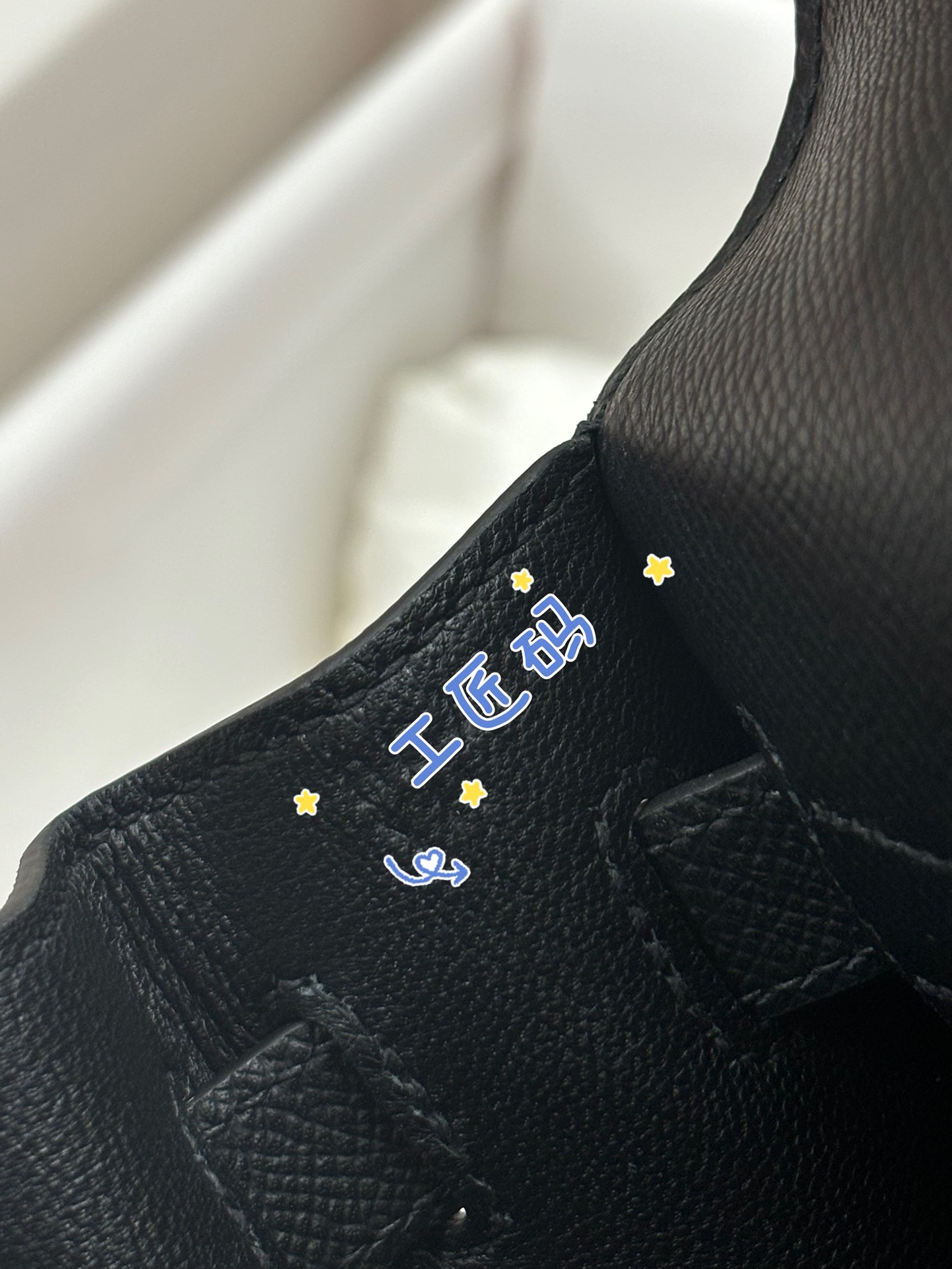 ###The interior is lined with Black chevre leather and has one zip pocket with an Hermès engraved pull and one open pocket on the opposite side.###