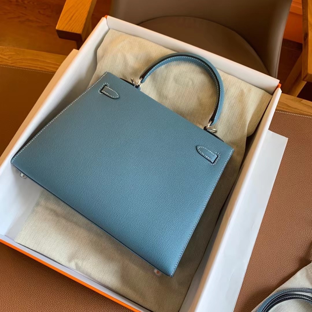 This is a replica ###Hermès Kelly Sellier 25 Blue Jean Epsom Palladium Hardware. ###