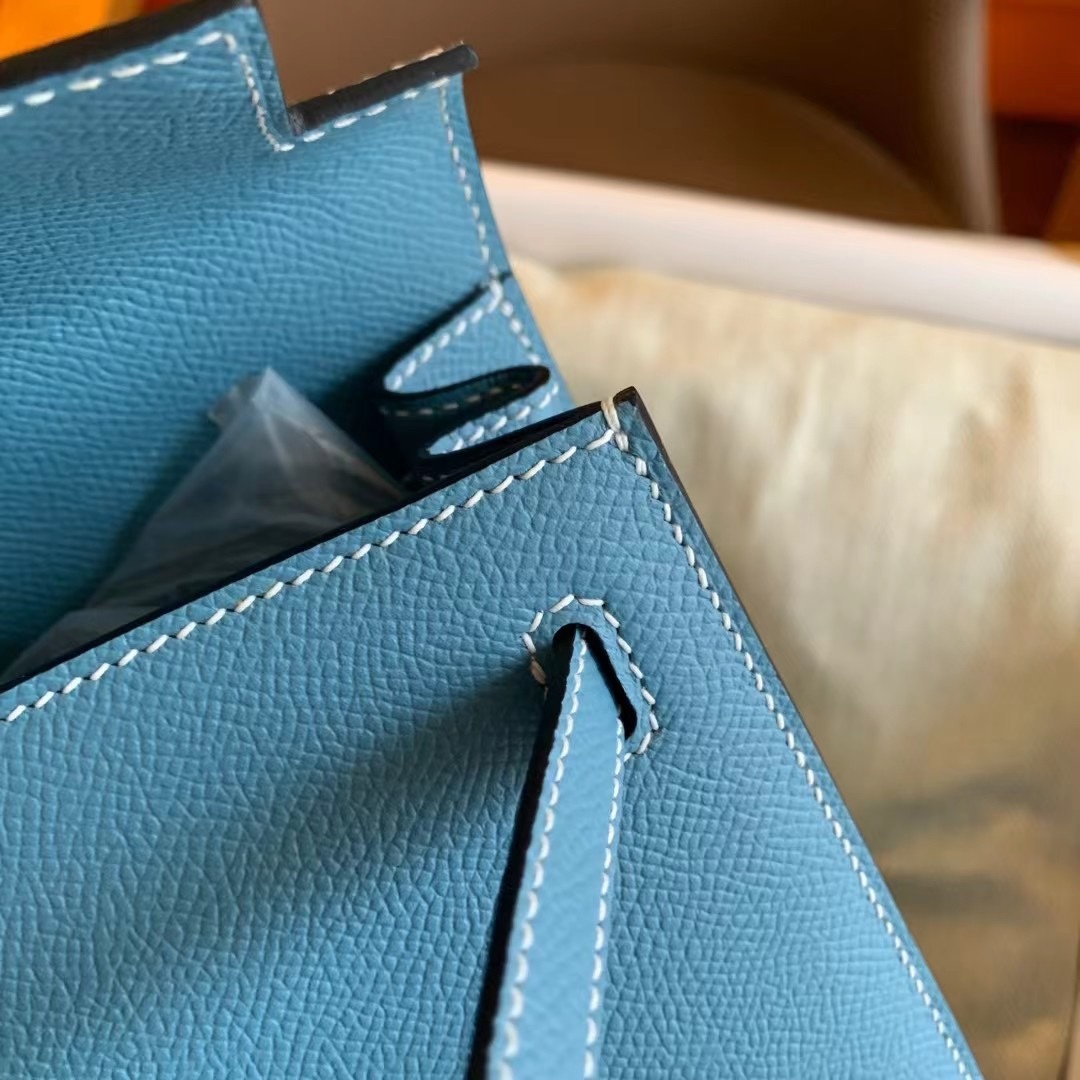 Hermès Kelly Sellier 25 Blue Jean Epsom Palladium Hardware