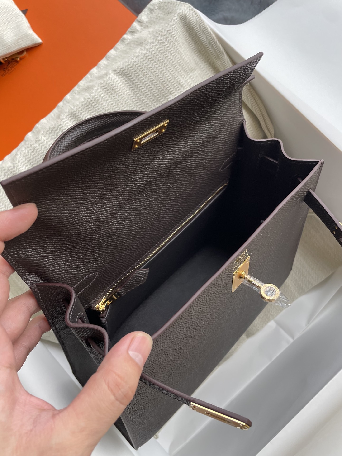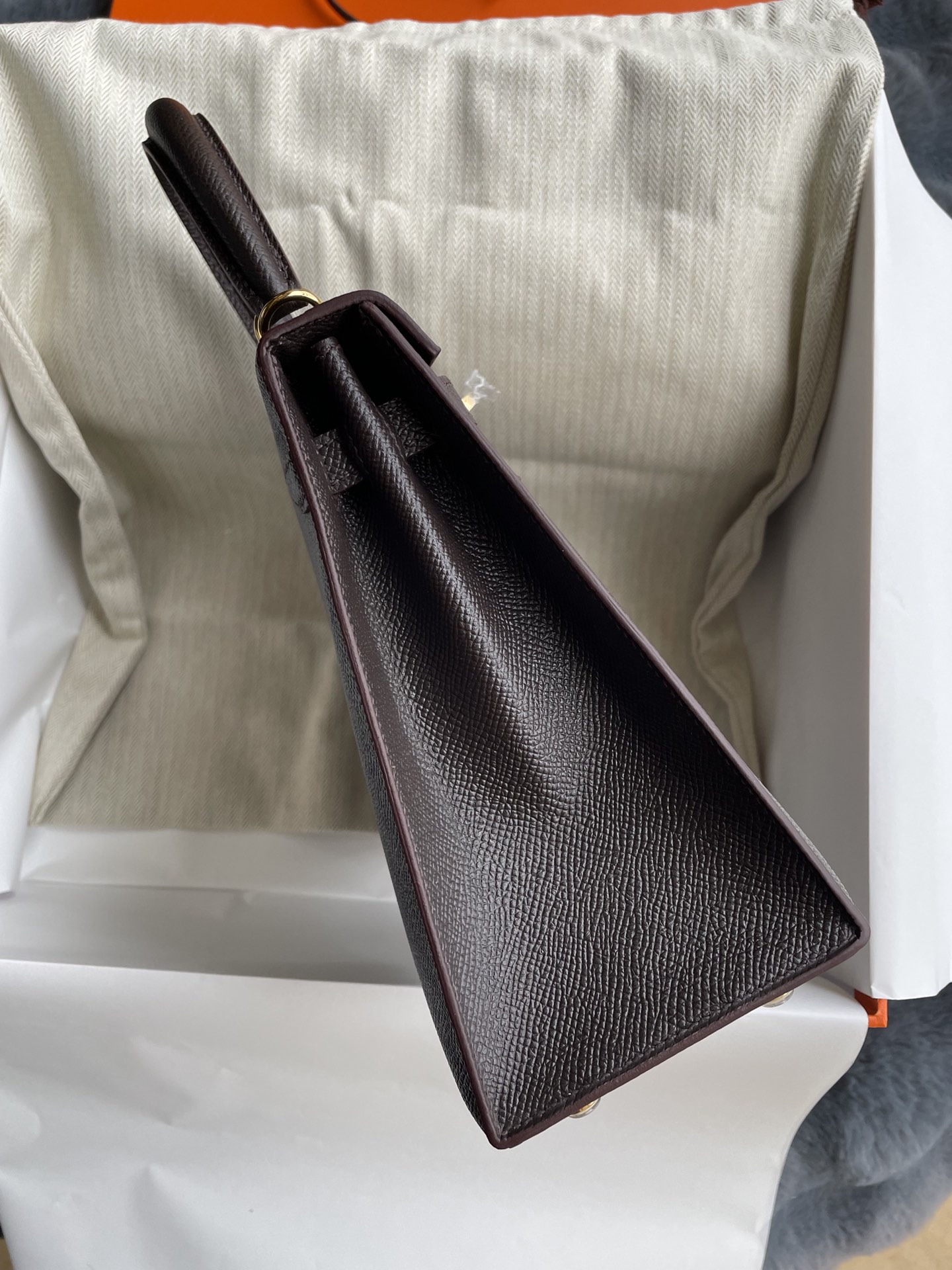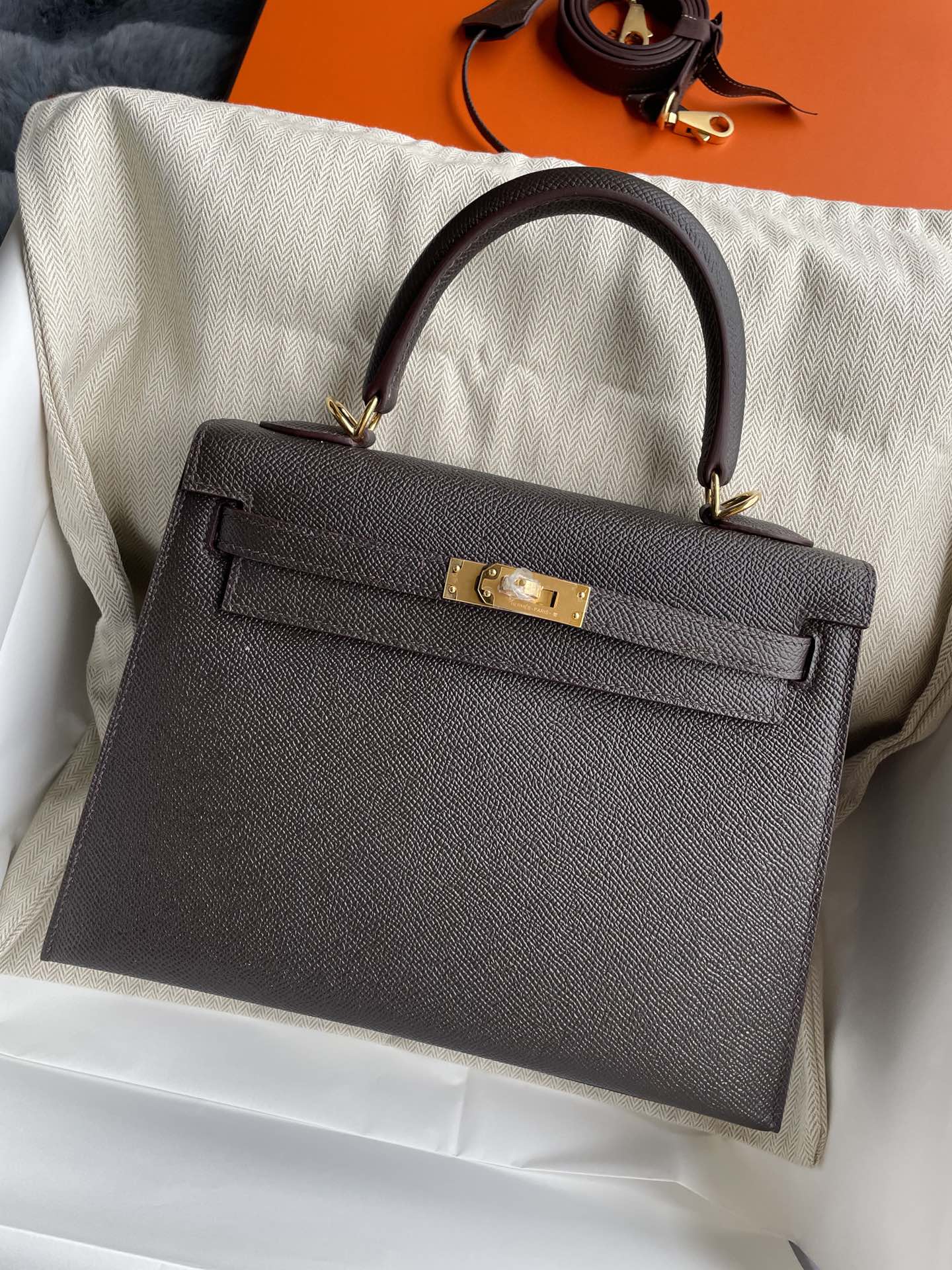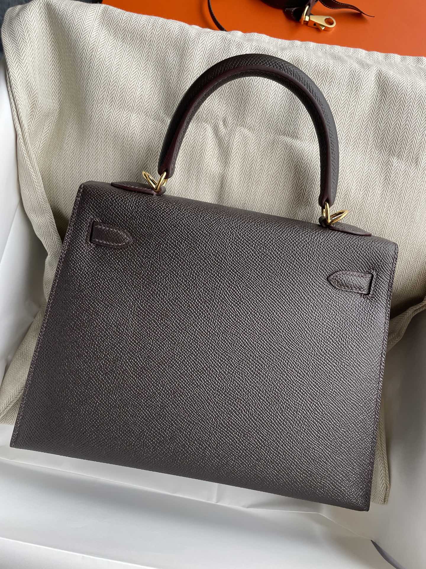 This is a replica ###Hermès Kelly Sellier 25 Chocolate Epsom Gold Hardware. ###