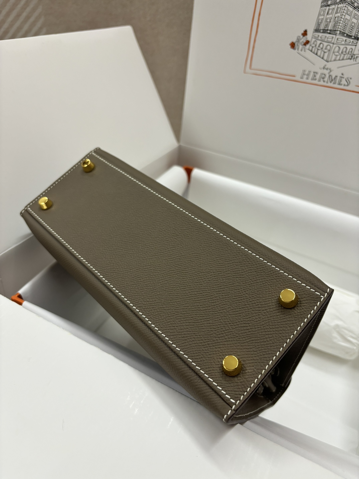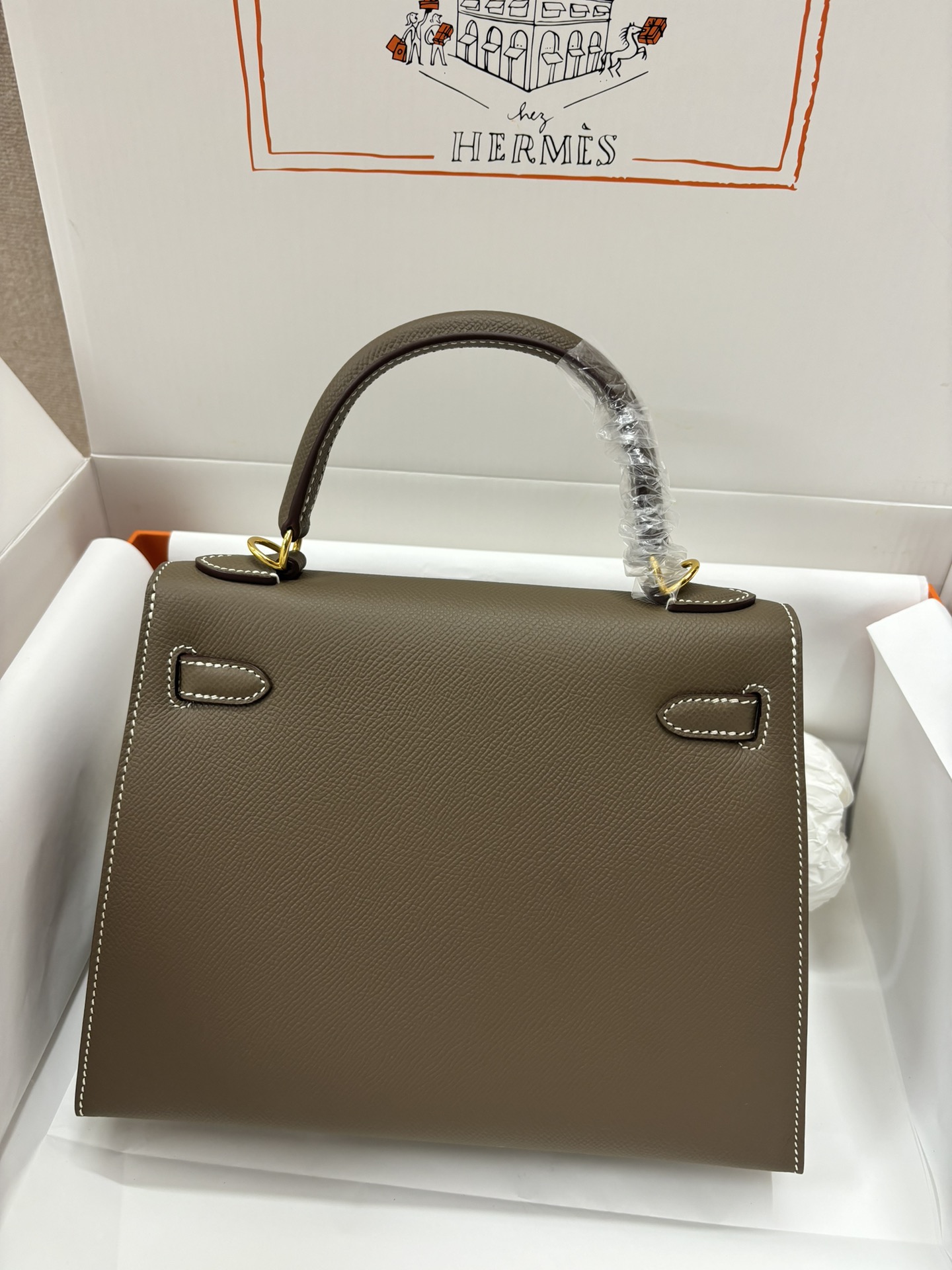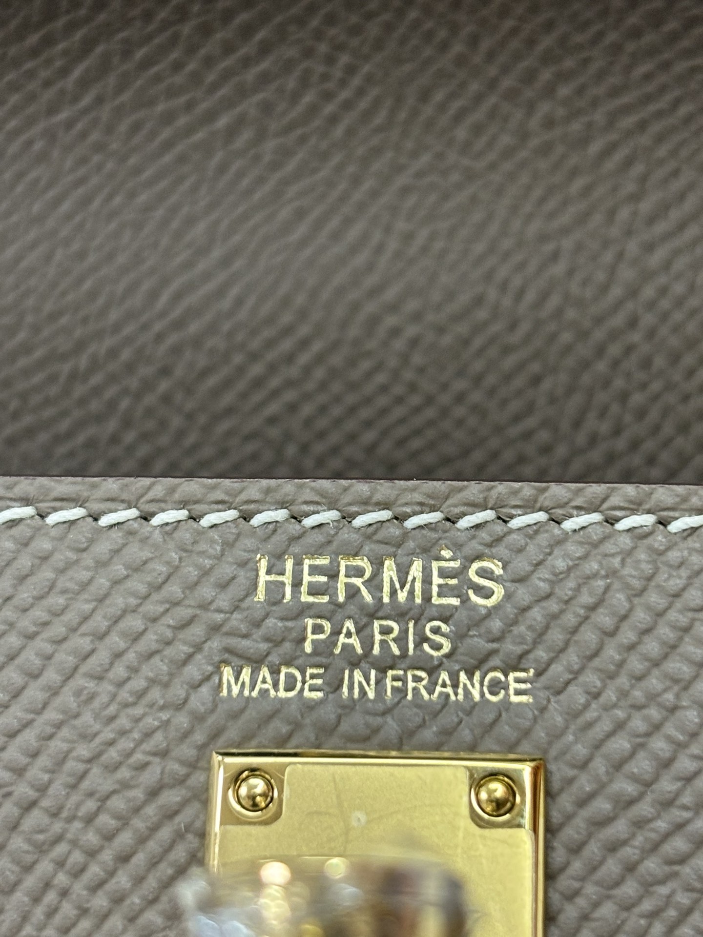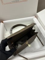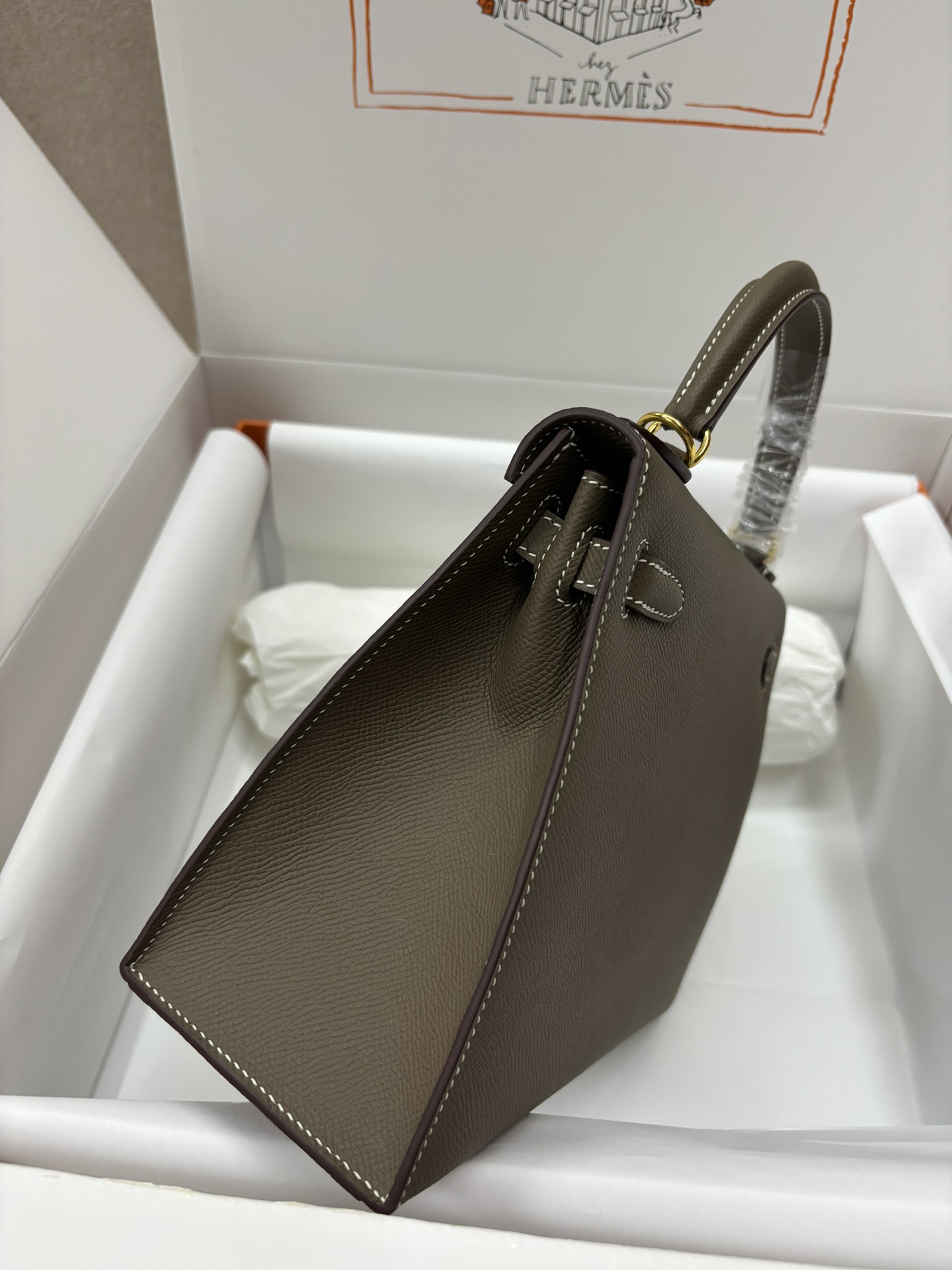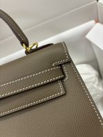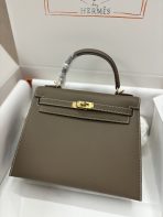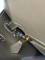 This is a replica ###Hermès Kelly Sellier 28 Etoupe Epsom Leather Gold Hardware. ###